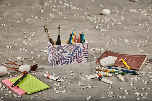 A Tiny Mistake Pastel Leaves Wooden Cutlery Holder, 18 x 10 x 6.5 cm
