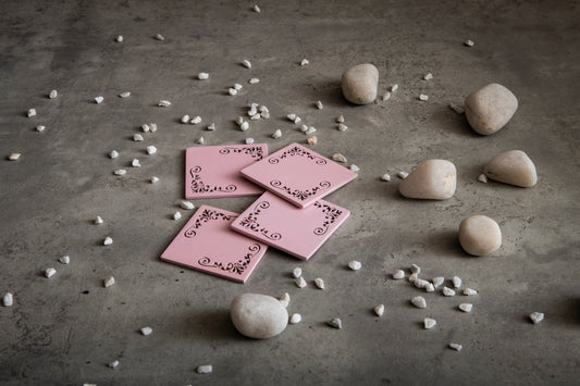 A Tiny Mistake Pastel Pink Square Wooden Coasters (Set of 4), 9.5 x 9.5 x 0.5 cm
