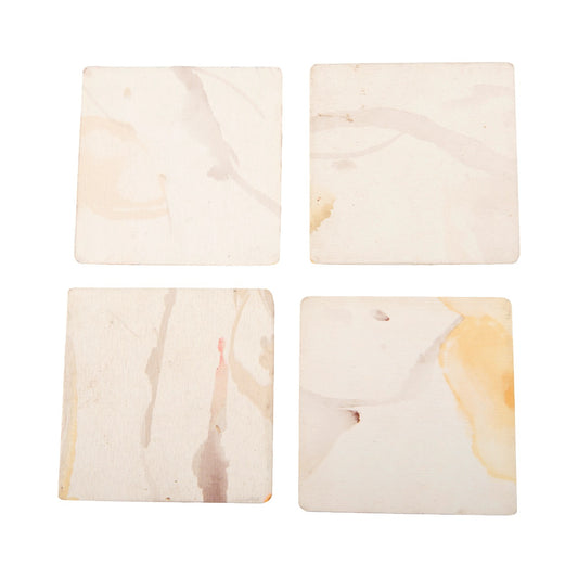 A Tiny Mistake Pale Red and Yellow Flowers Square Wooden Coasters (Set of 4), 9.5 x 9.5 x 0.5 cm