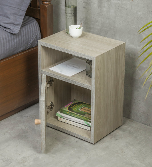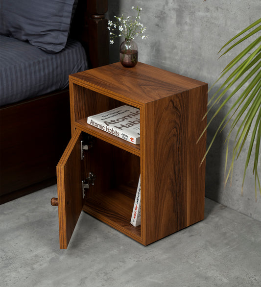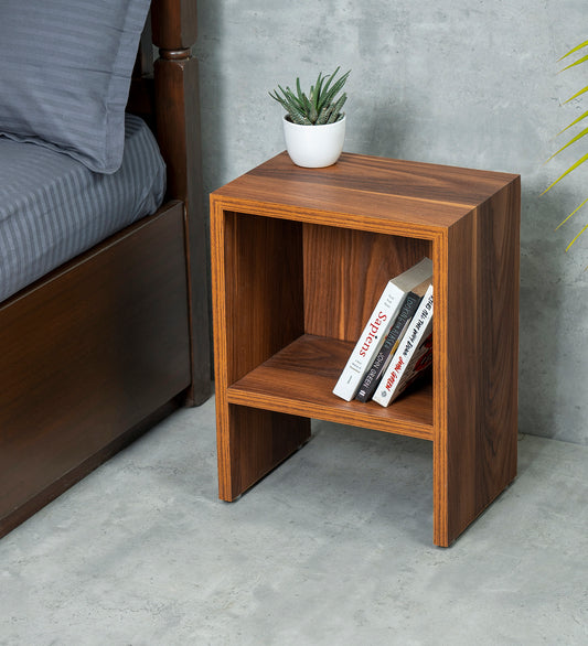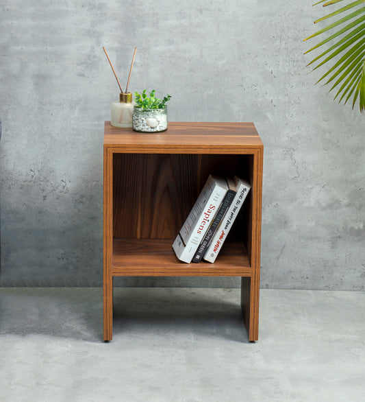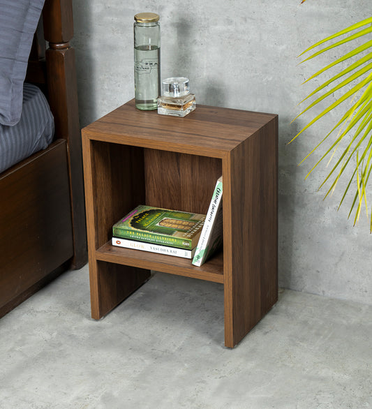 Walnut Hues Mica Bedside Table, Side Table, Bedside Open Storage, Bedroom Decor
