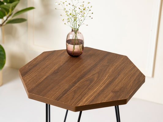 Walnut Hues Octagon Side Tables with Hairpin Legs, Side Tables, Wooden Tables, Living Room Decor by A Tiny Mistake
