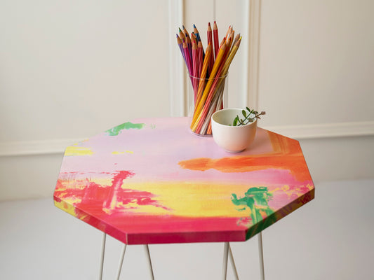 Neon Octagon Side Tables with Hairpin Legs, Side Tables, Wooden Tables, Living Room Decor by A Tiny Mistake