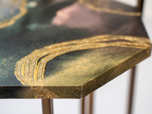 Gold Stacks Octagon Oblique Side Tables, Wooden Tables, Living Room Decor by A Tiny Mistake