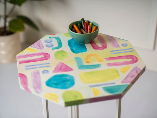 Tiny Doodles Octagon Oblique Side Tables, Wooden Tables, Living Room Decor by A Tiny Mistake