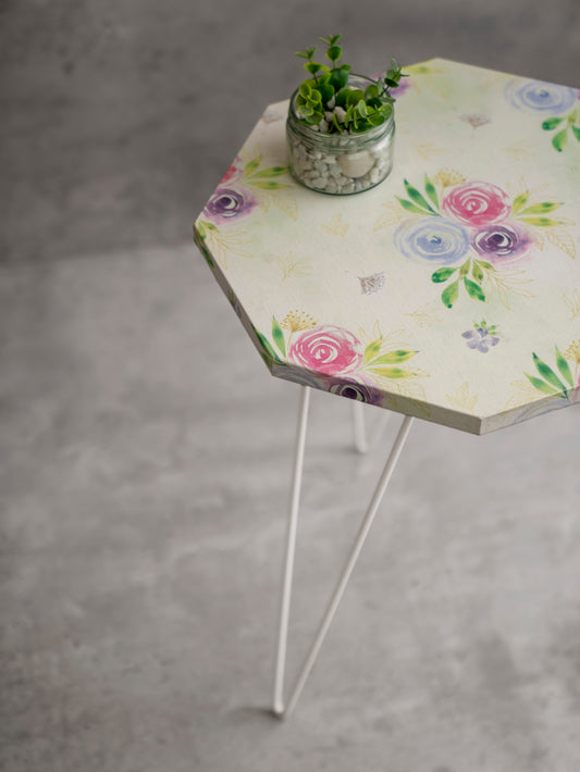 Blush Roses Octagon Side Tables with Hairpin Legs, Side Tables, Wooden Tables, Living Room Decor by A Tiny Mistake