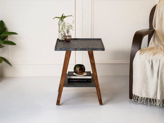 Transcendent Tinge Dark Blue Trapezium Incline Table, Side Table, Wooden End Table, Living Room Decor
