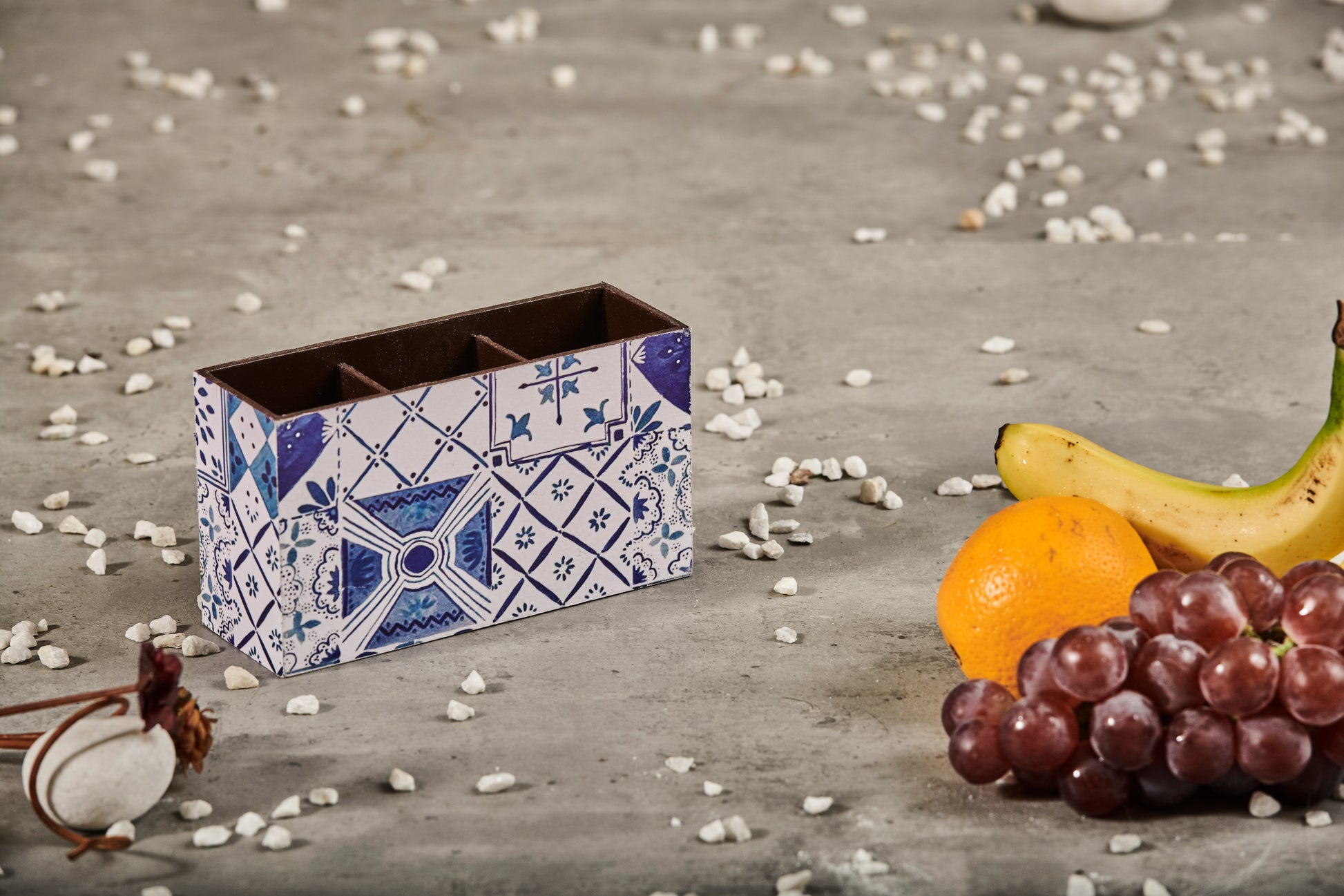MADE IN INDIA: This partitioned cutlery holder is a delight to use. With two partitions to keep your cutlery and made using MDF, the colourful patterns simply light up the table where they are put. Our team of artisans handcraft these products with a lot of love in our workshop. We design and manufacture our product range in India.