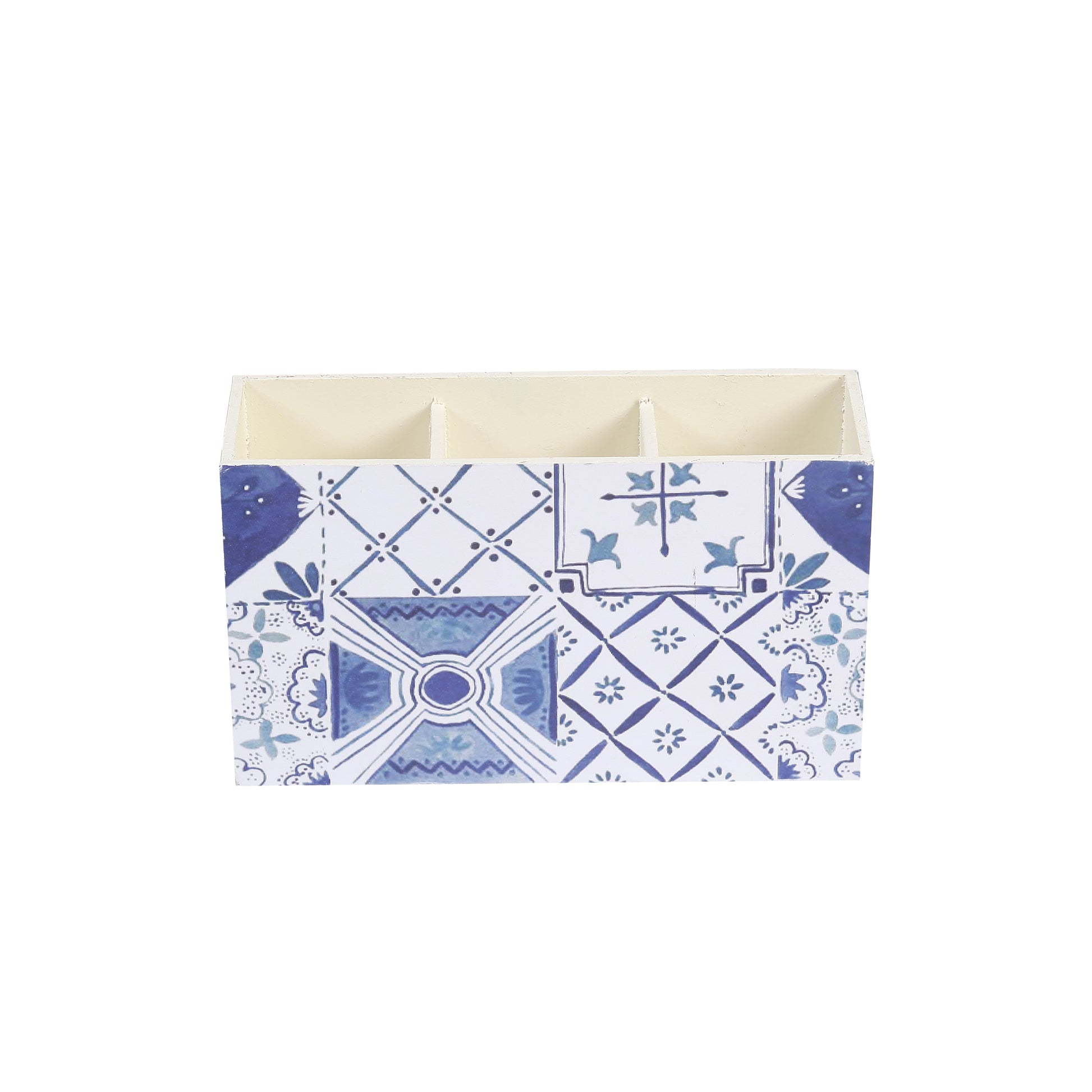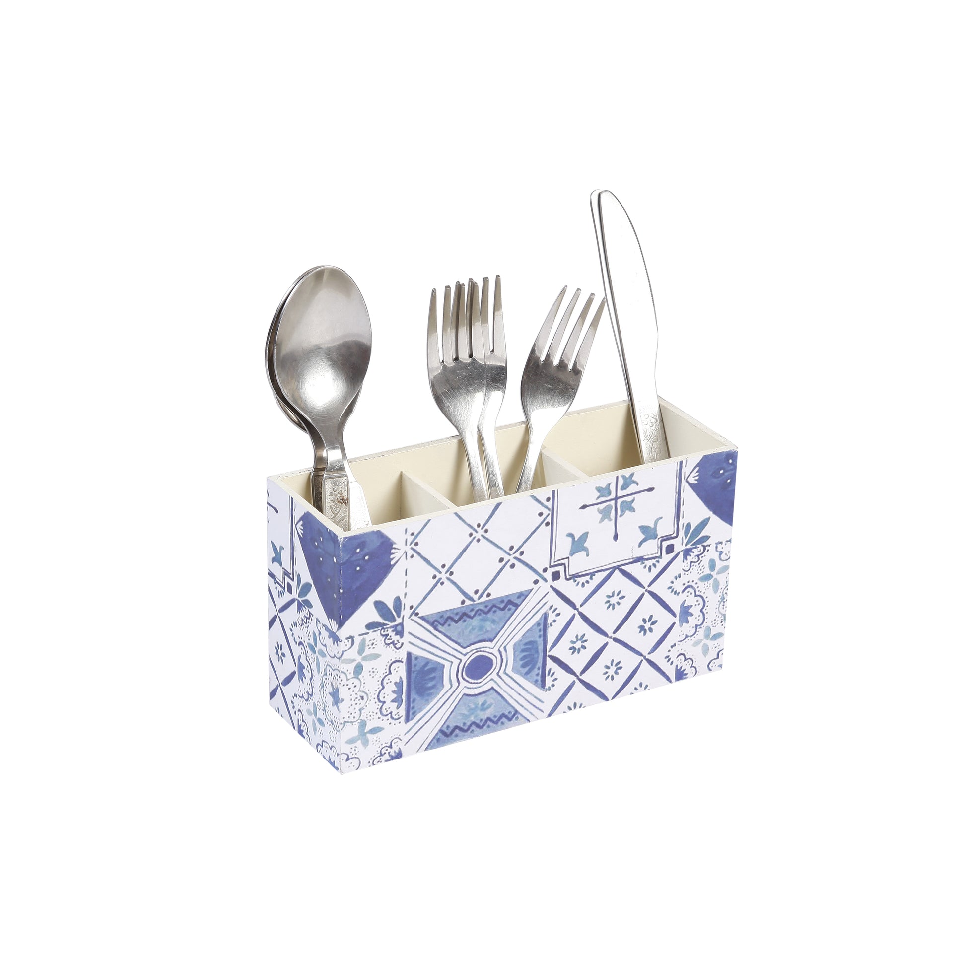 A Tiny Mistake Turkish Blue Tiles Wooden Cutlery Holder, 18 x 10 x 6.5 cm