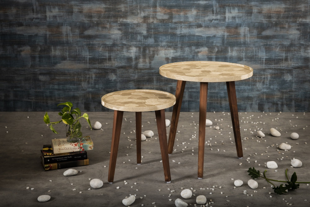 A Tiny Mistake Allure Gold Wooden Nesting Tables (Set of 2), Living Room Decor