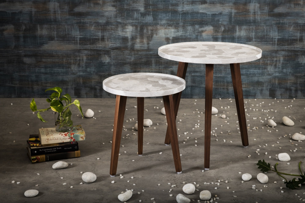 A Tiny Mistake Allure Silver Wooden Nesting Tables (Set of 2), Living Room Decor