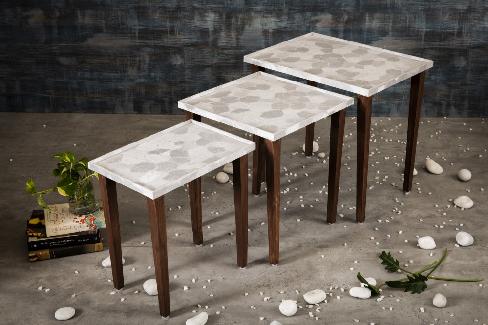 A Tiny Mistake Allure Silver Wooden Rectangle Nesting Tables (Set of 3), Living Room Decor