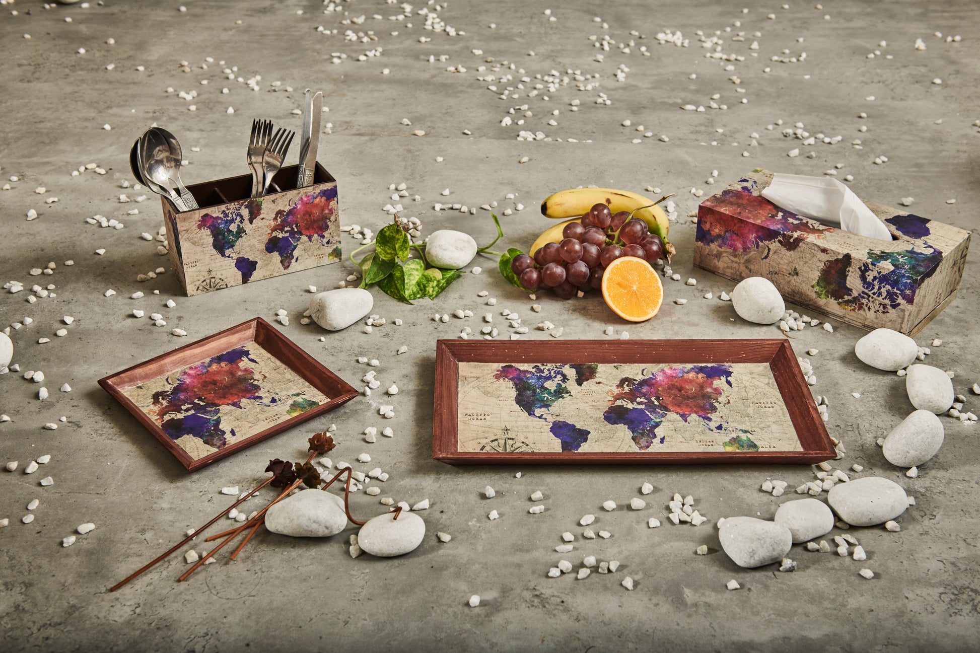 ALIGNED PRODUCTS: Matching cutlery holders, coasters, tissue boxes as well as other sizes of trays available.