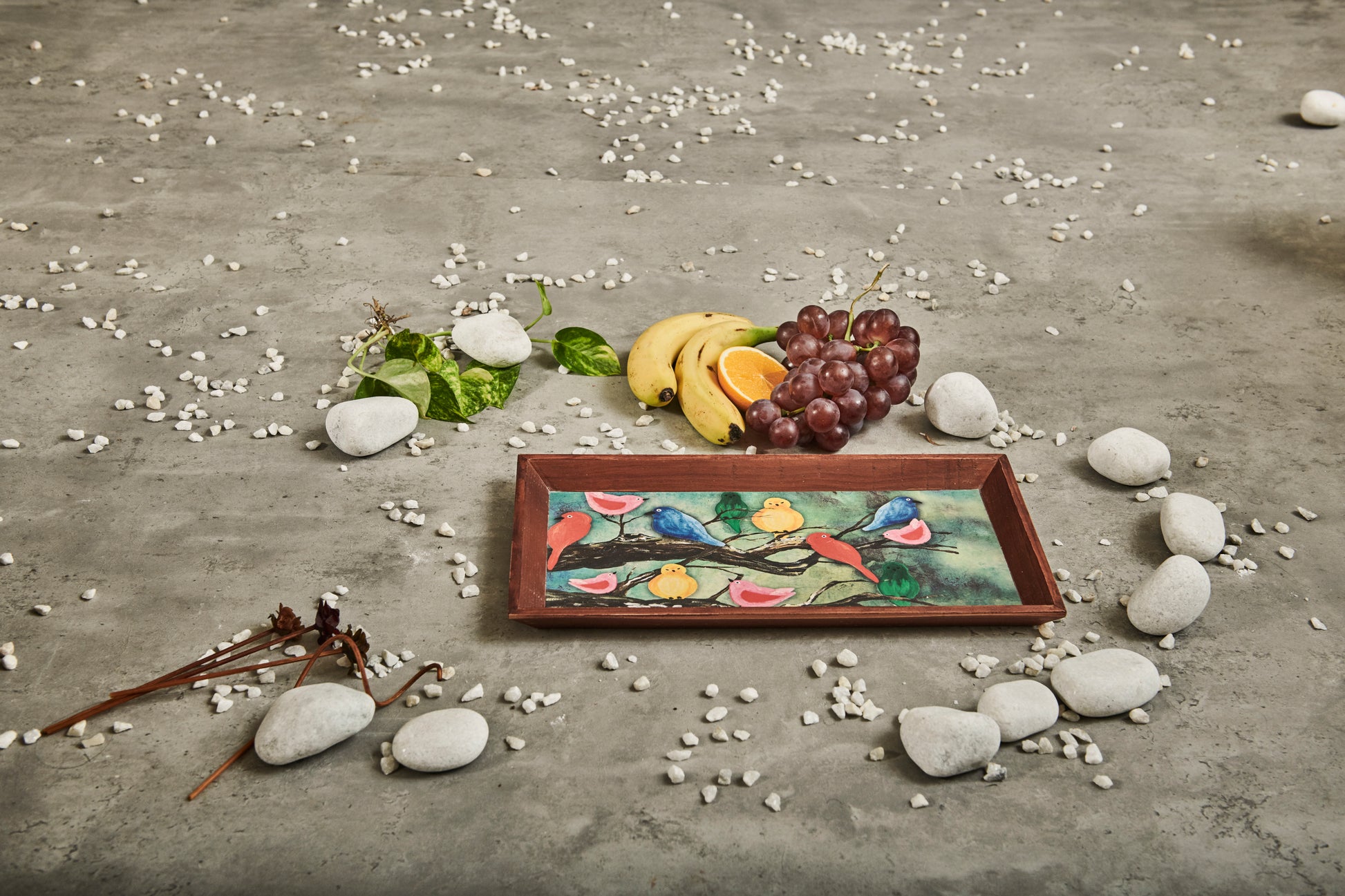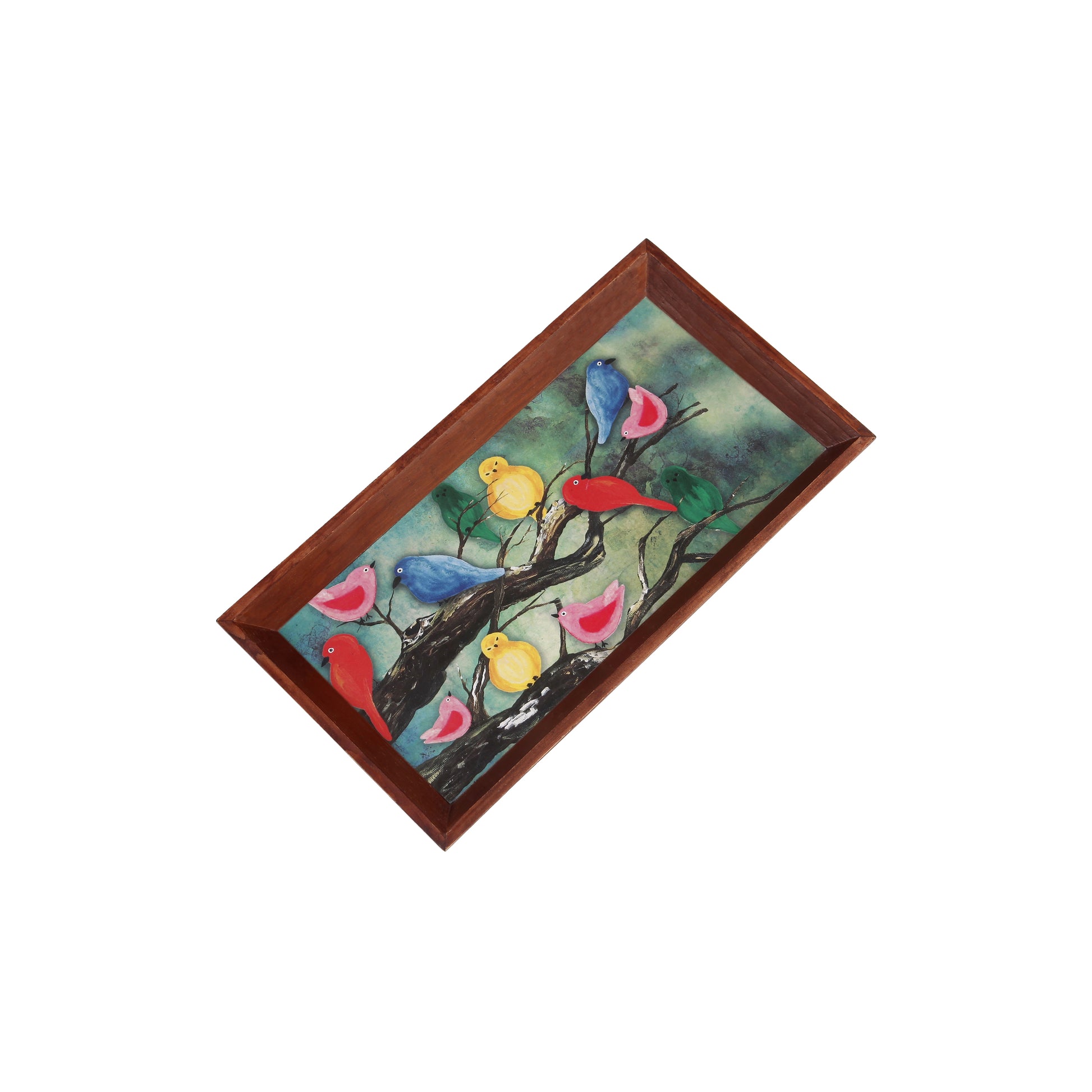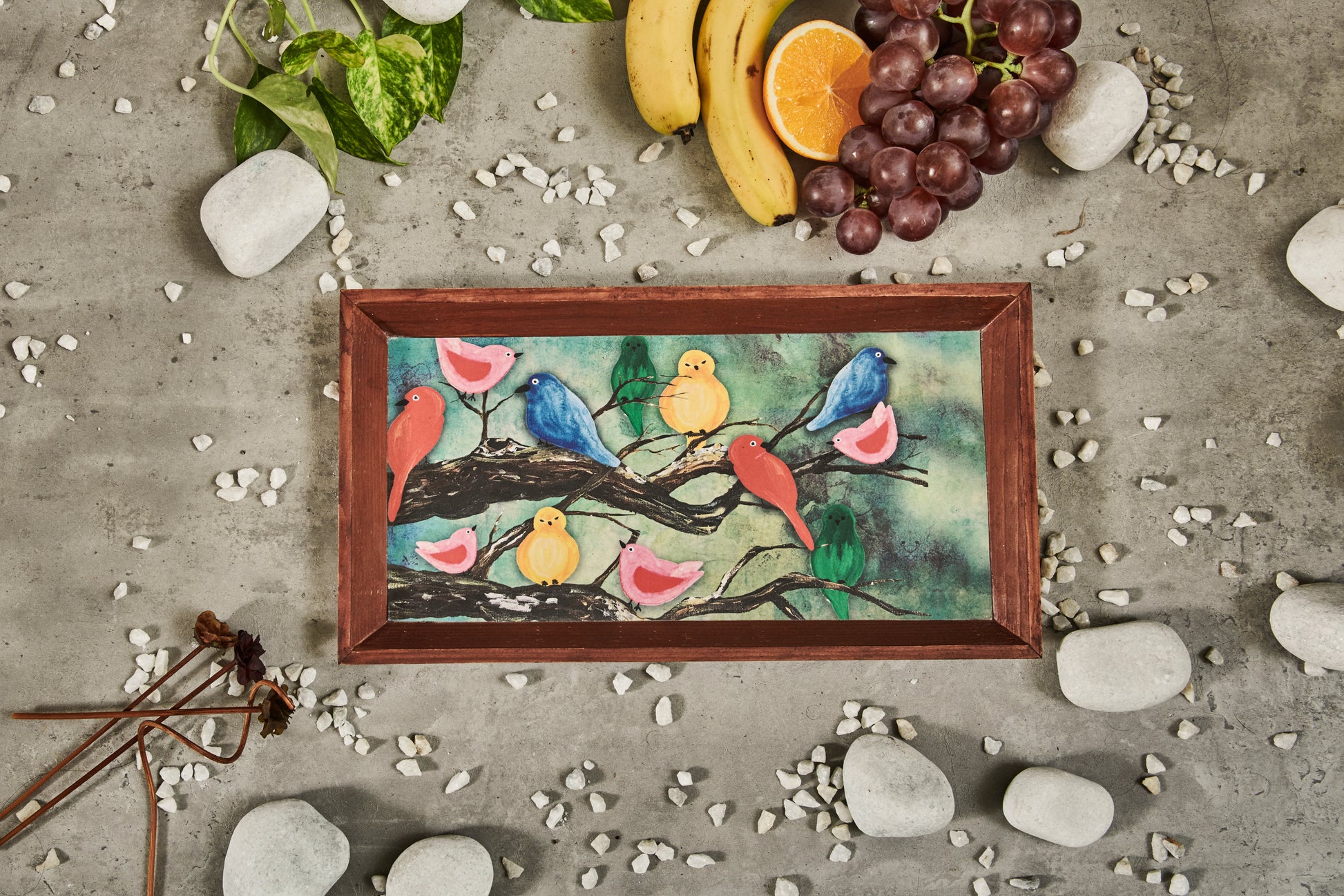 A Tiny Mistake Birds on a Branch Rectangle Wooden Serving Tray, 35 x 20 x 2 cm