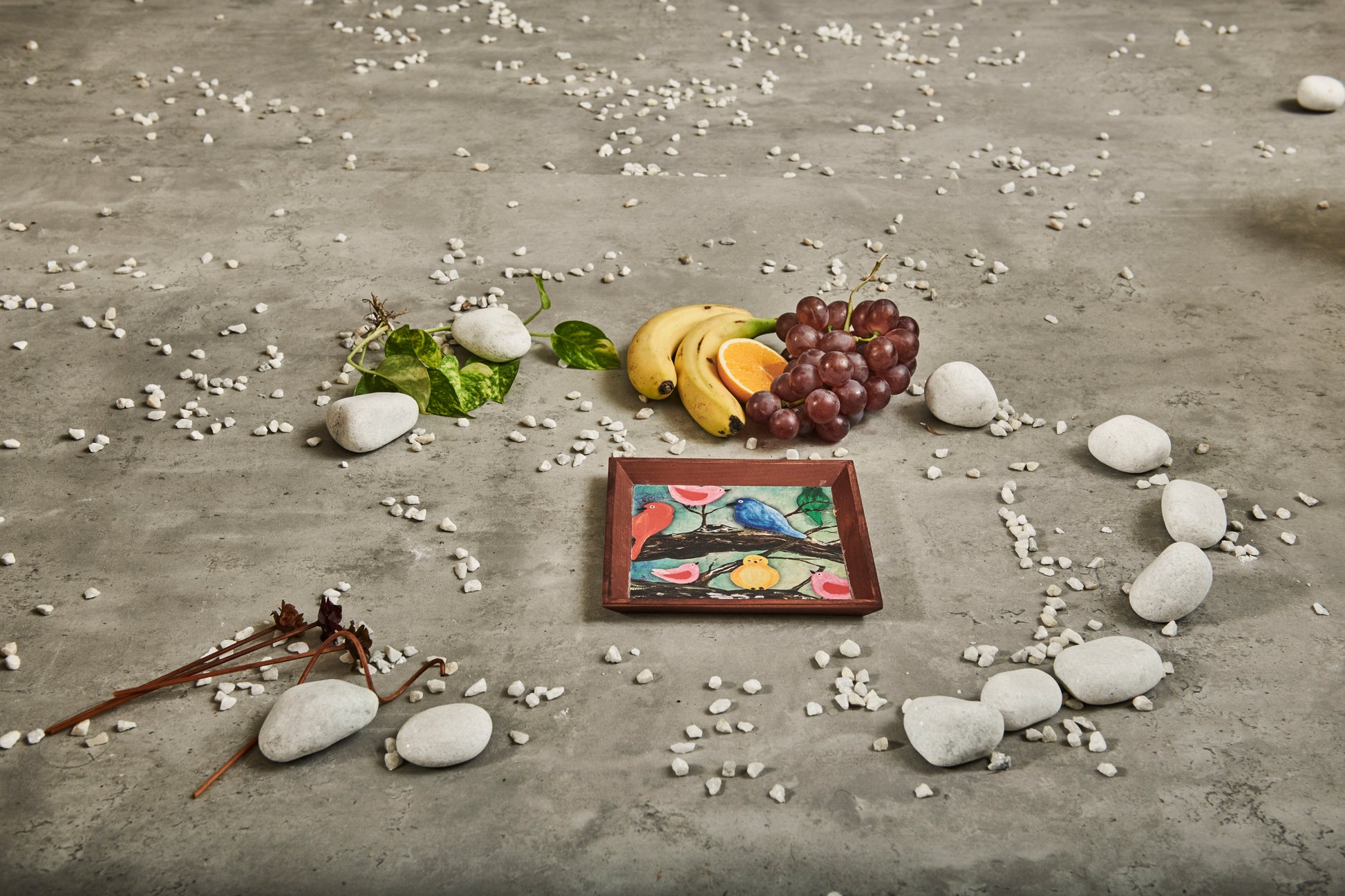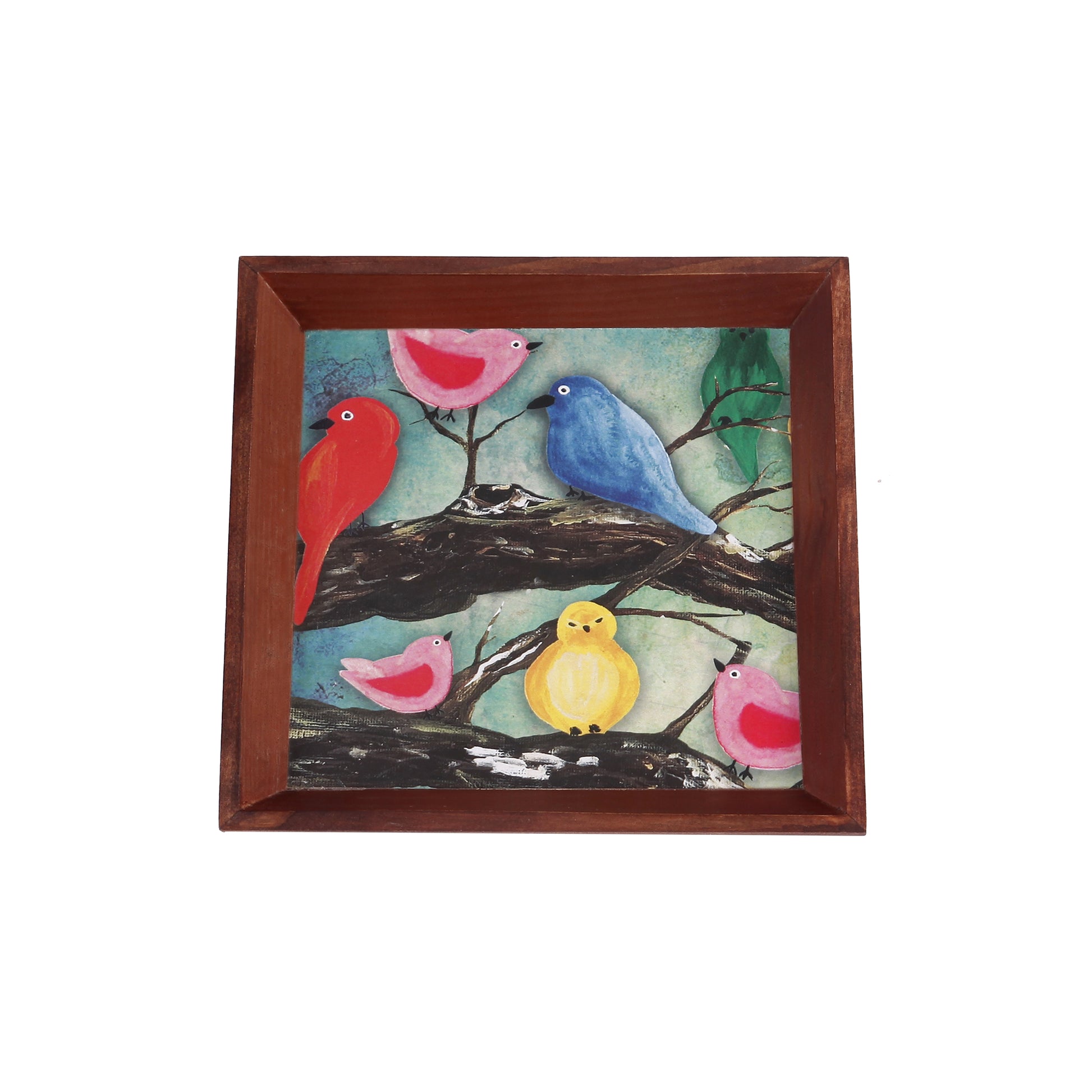 A Tiny Mistake Birds on a Branch Small Square Wooden Serving Tray, 18 x 18 x 2 cm