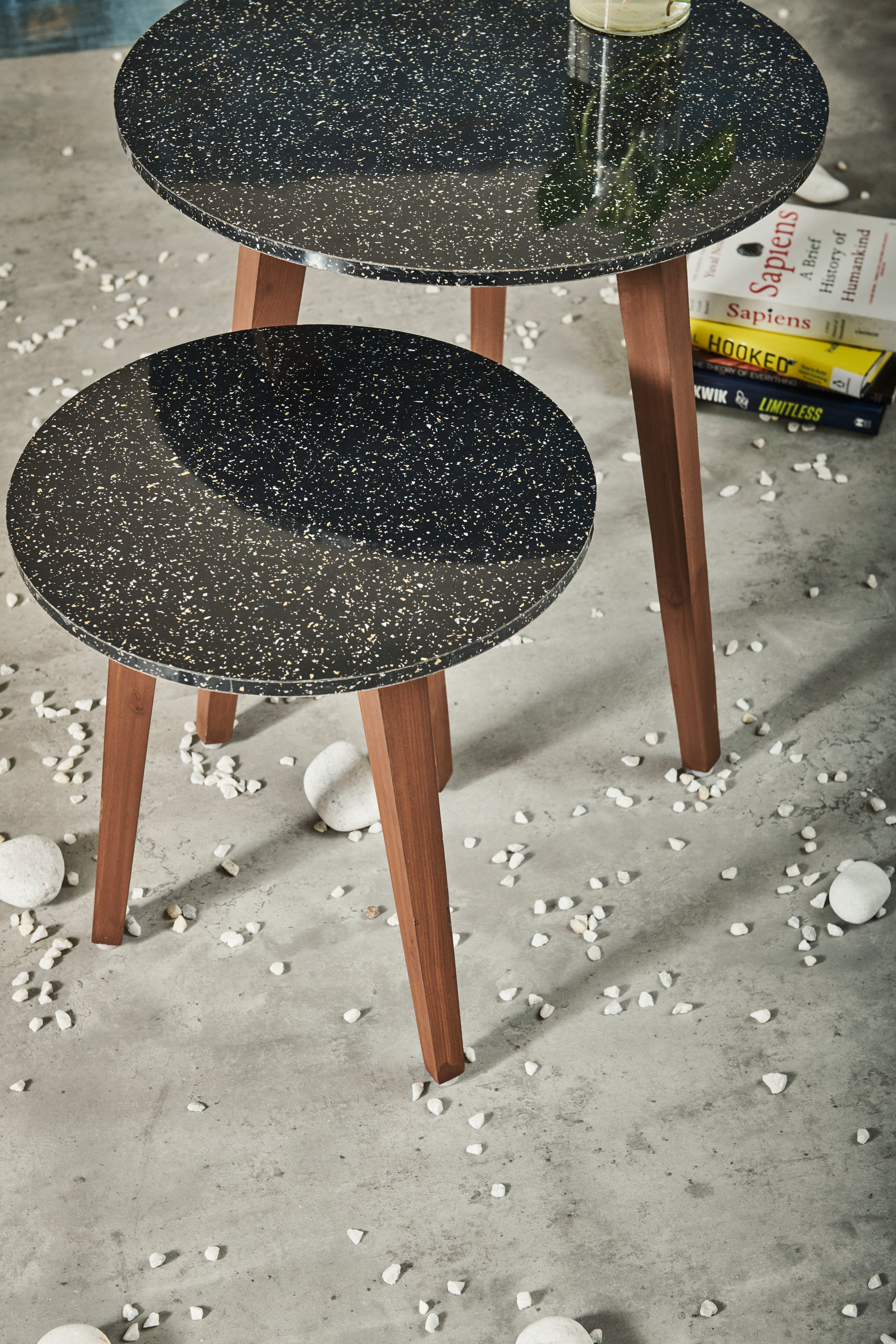 A Tiny Mistake Black Granite Finish Wooden Nesting Tables (Set of 2), Living Room Decor
