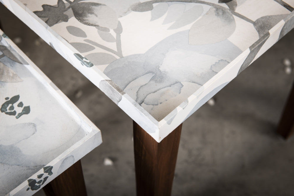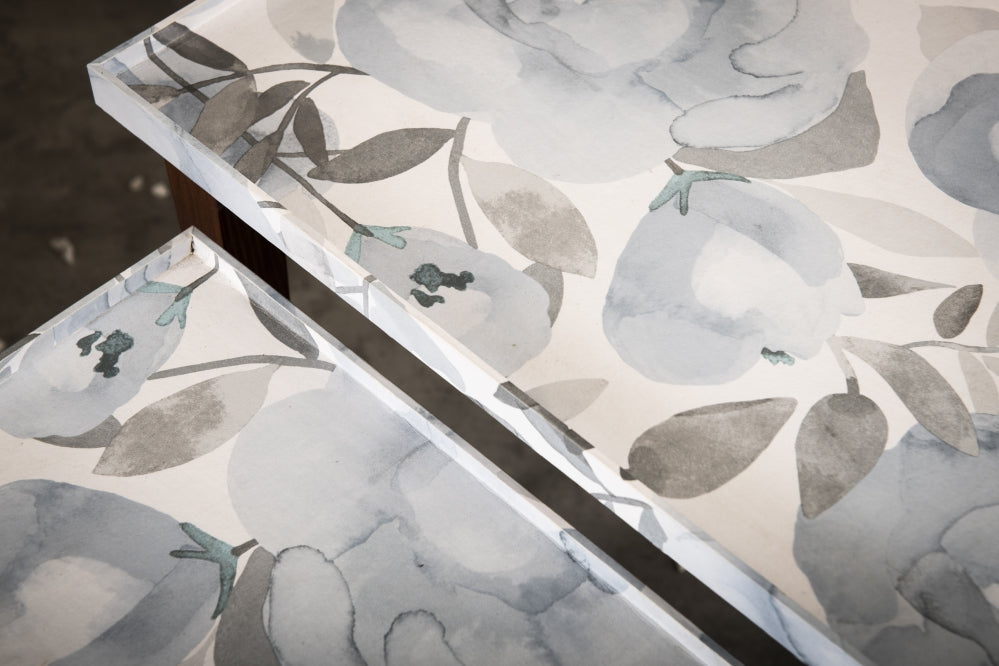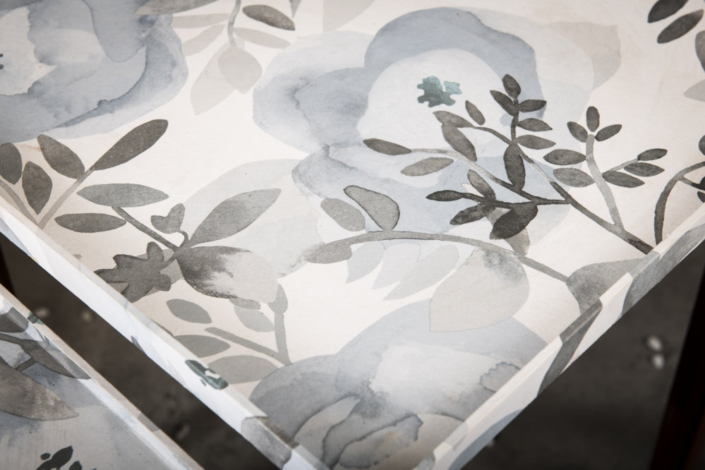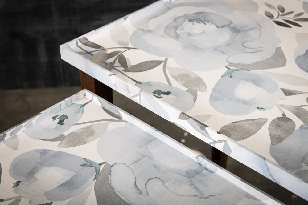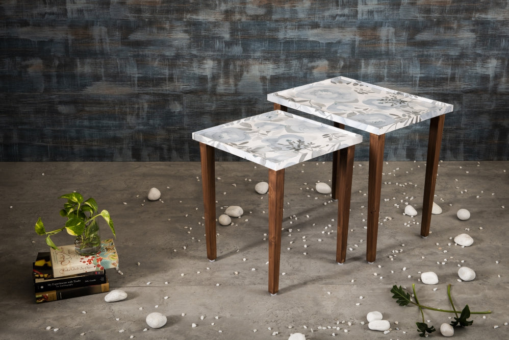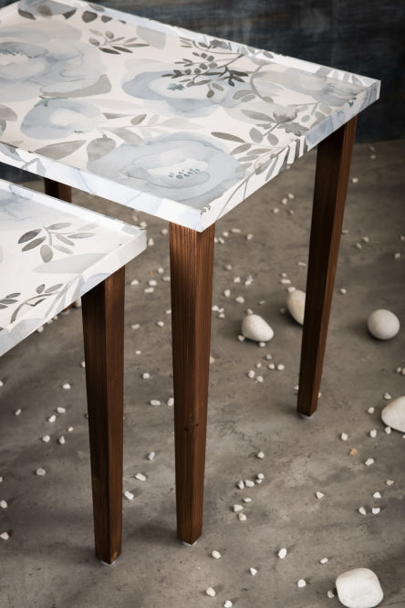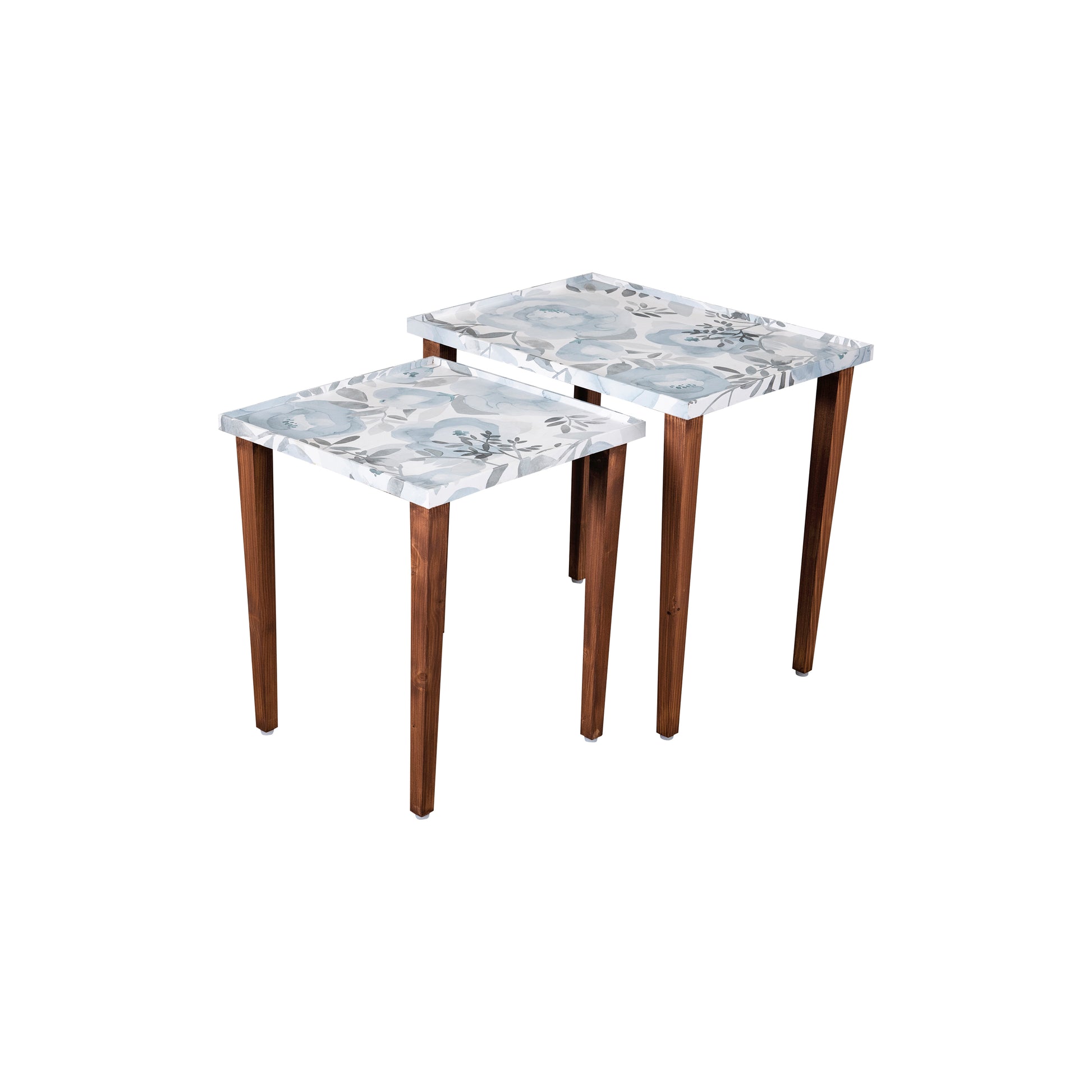 A Tiny Mistake Blossom (Blue and Grey) Wooden Rectangle Nesting Tables (Set of 2), Living Room Decor