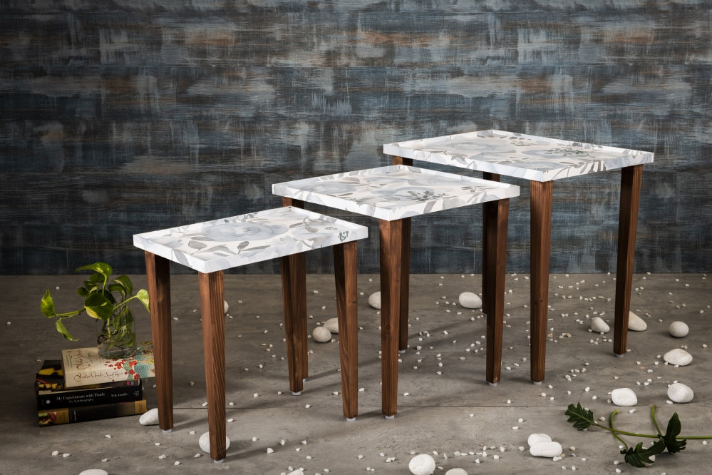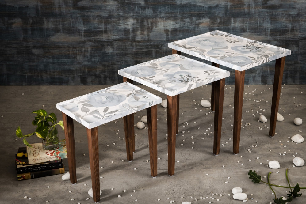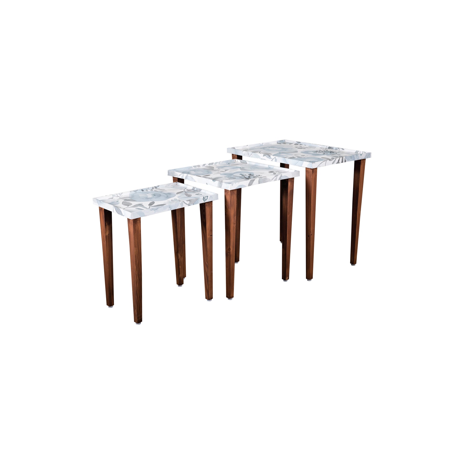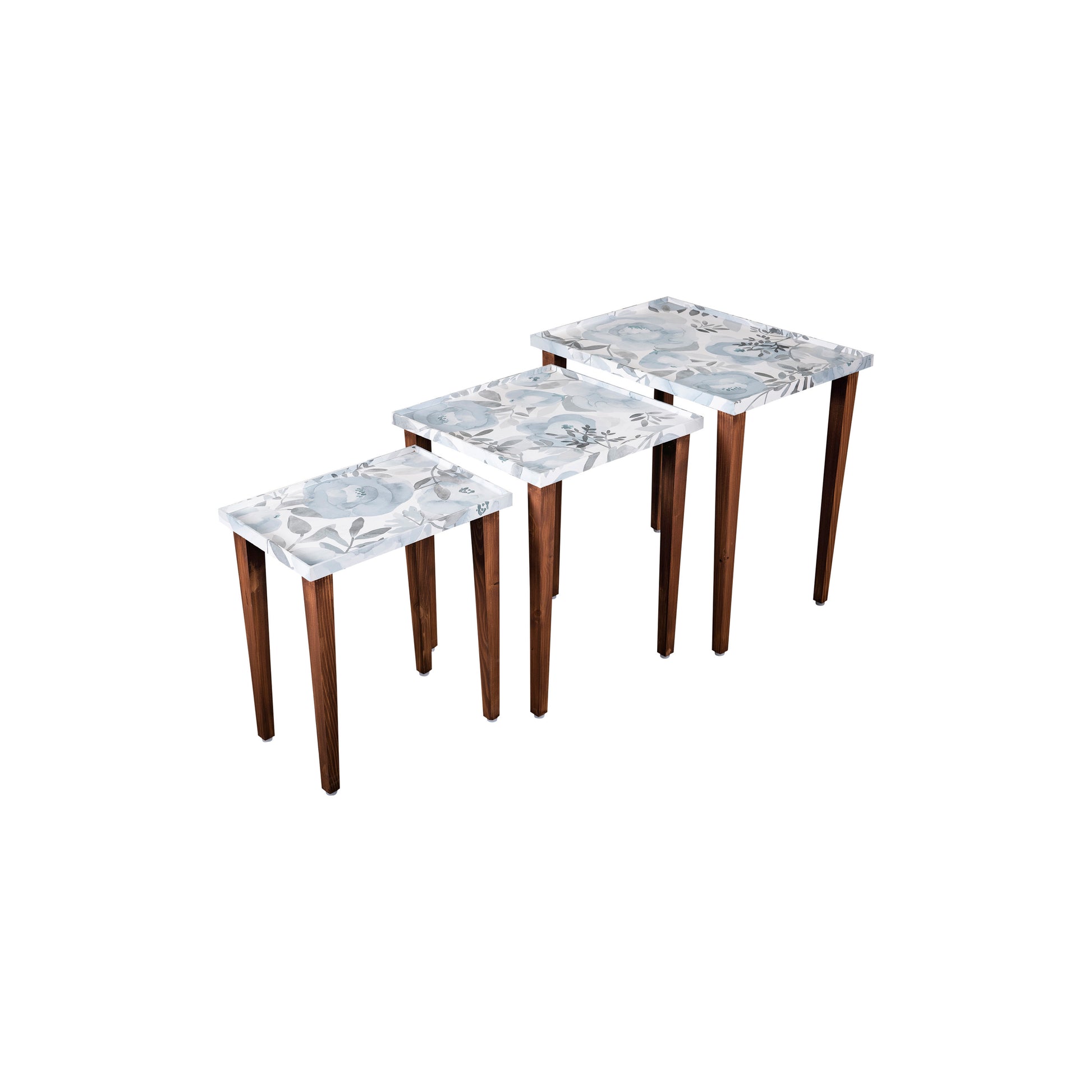 A Tiny Mistake Blossom (Blue and Grey) Wooden Rectangle Nesting Tables (Set of 3), Living Room Decor