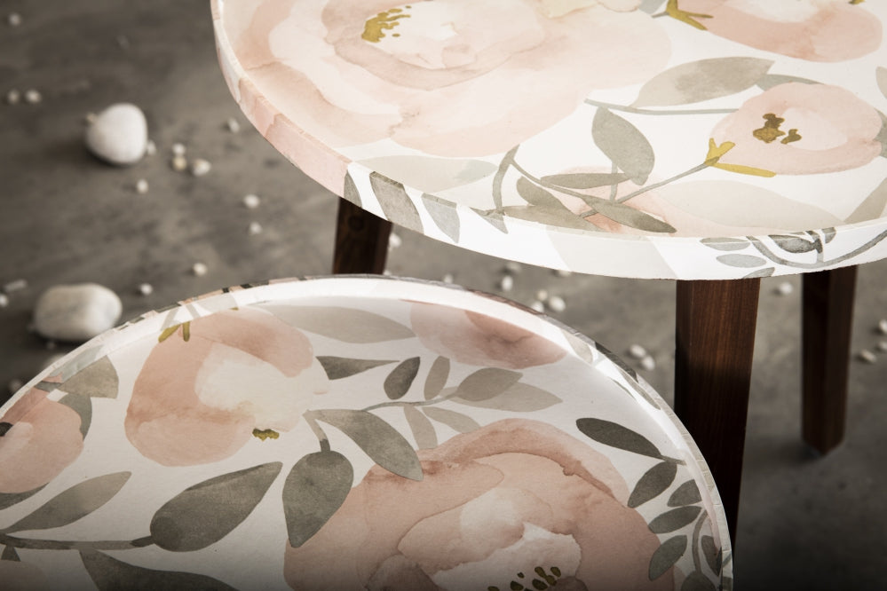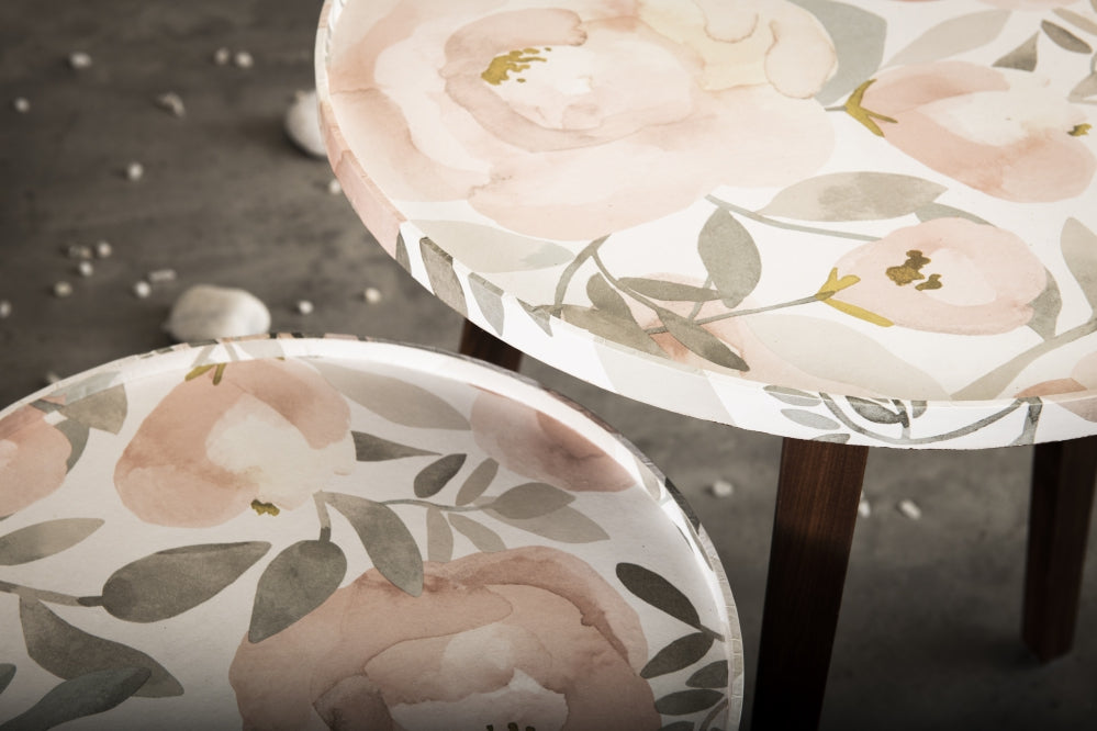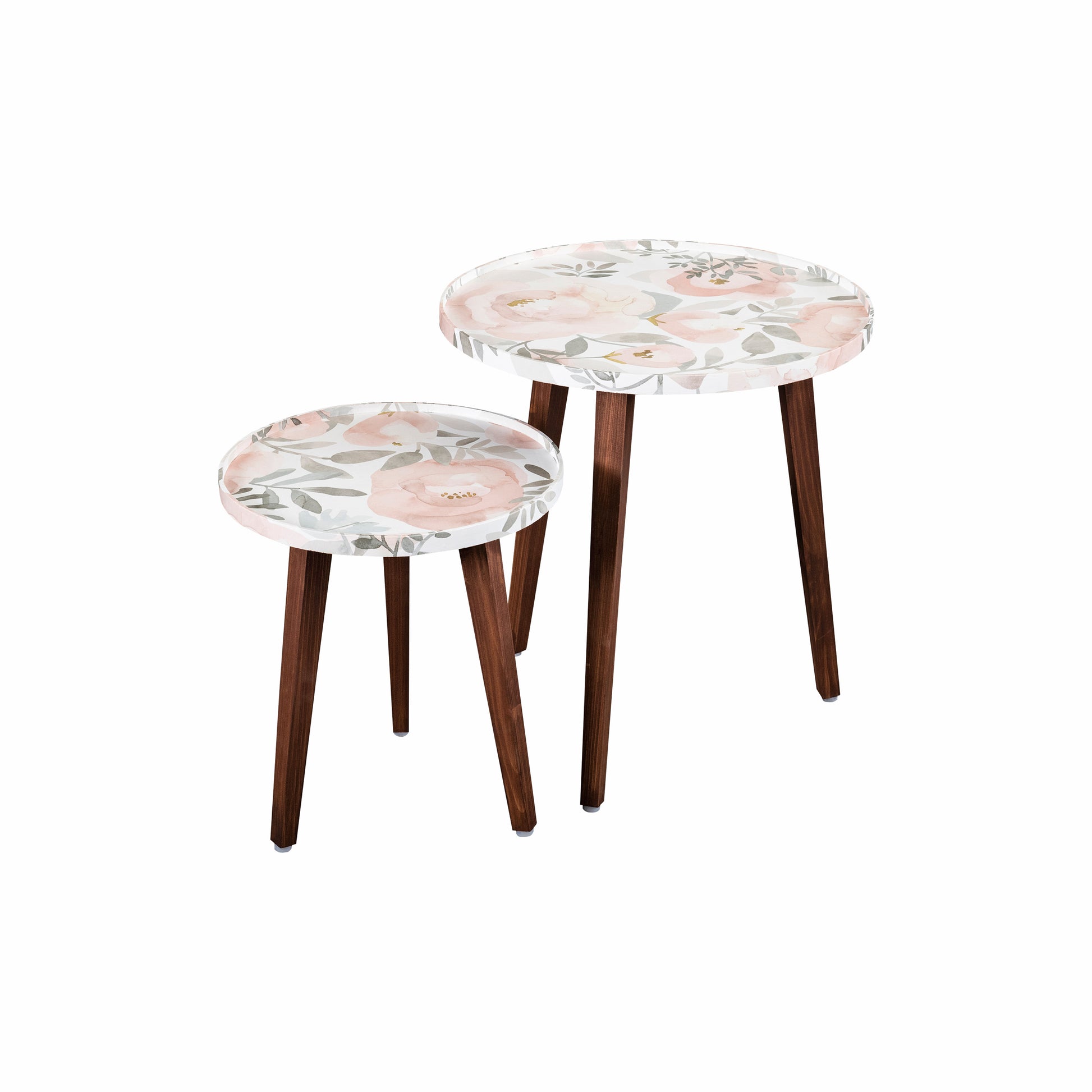 A Tiny Mistake Blossom (Peach and Pink) Wooden Nesting Tables (Set of 2), Living Room Decor