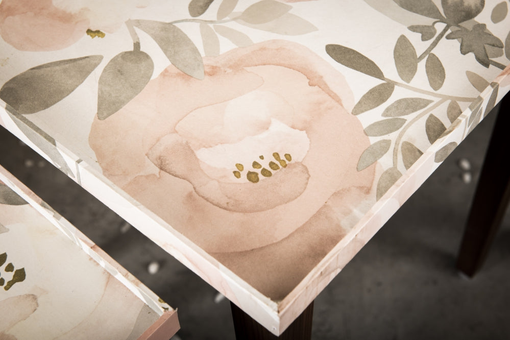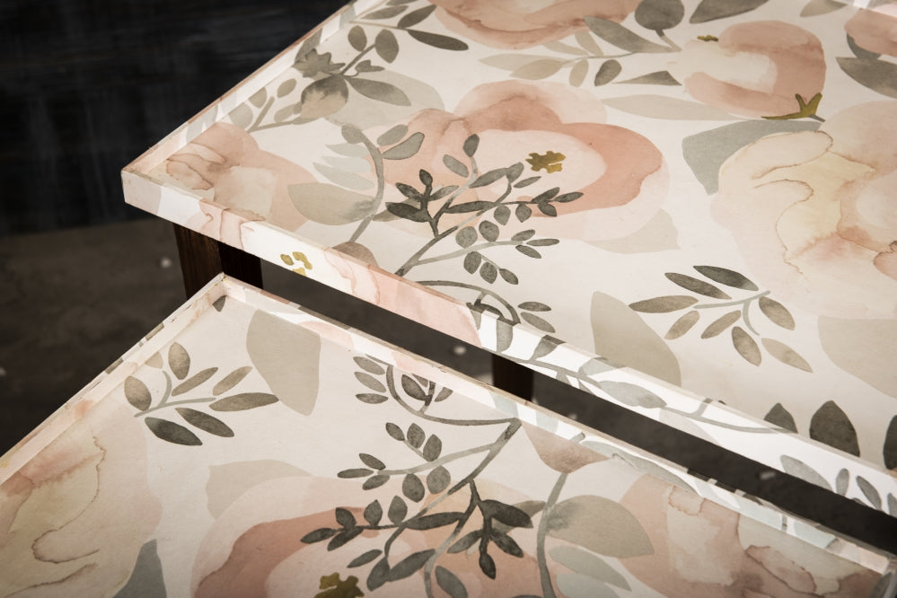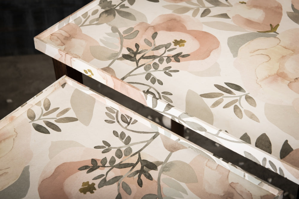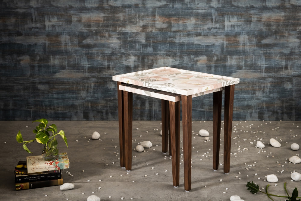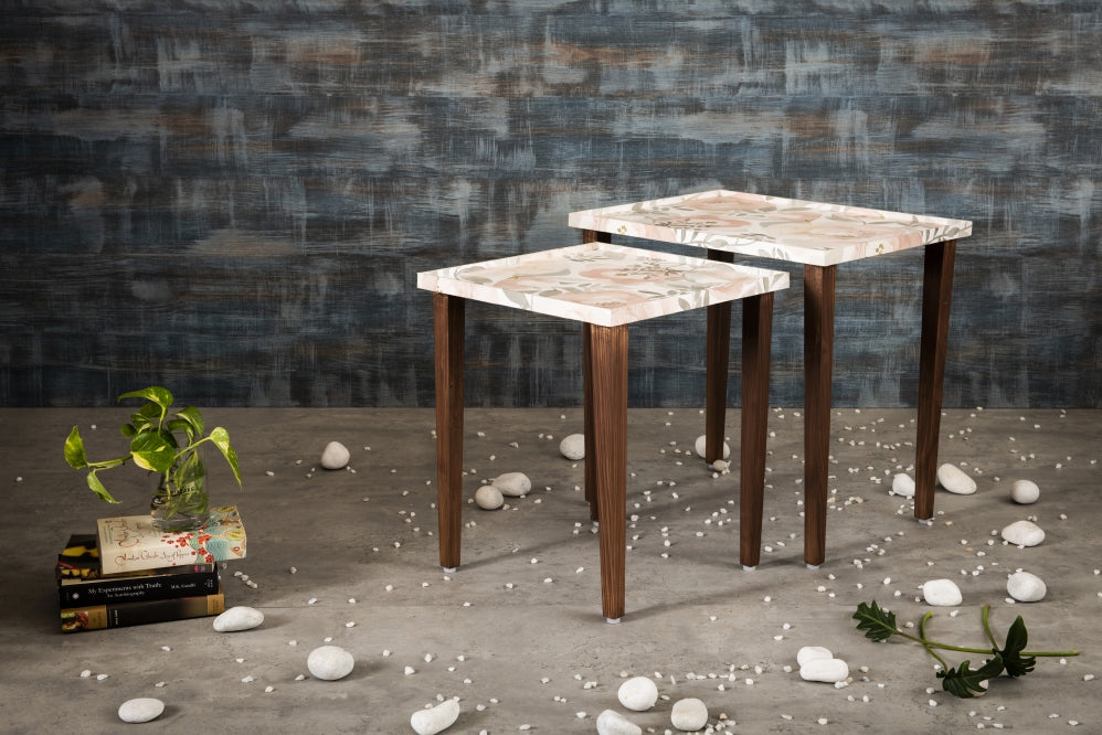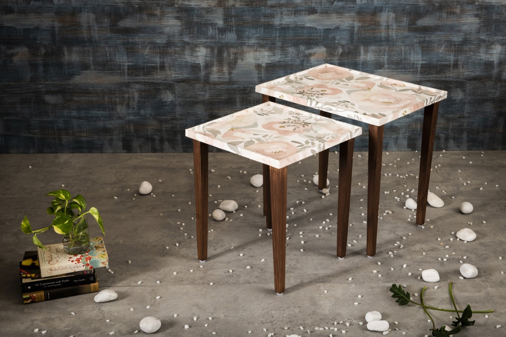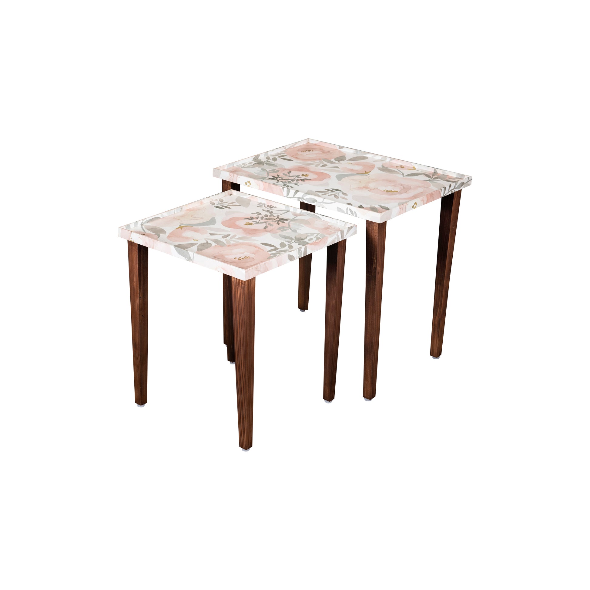 A Tiny Mistake Blossom (Peach and Pink) Wooden Rectangle Nesting Tables (Set of 2), Living Room Decor