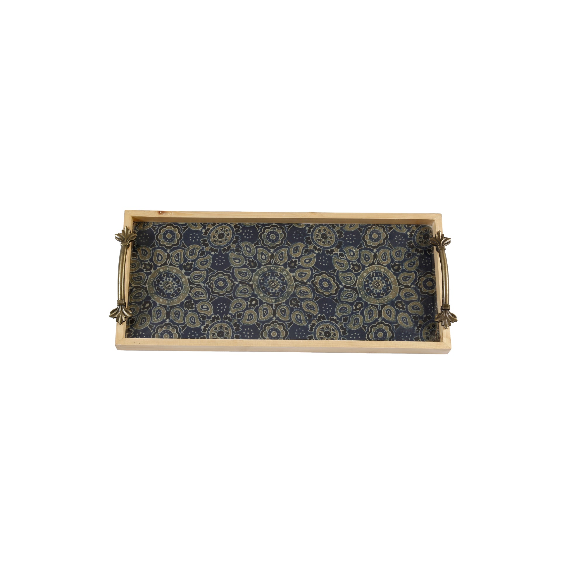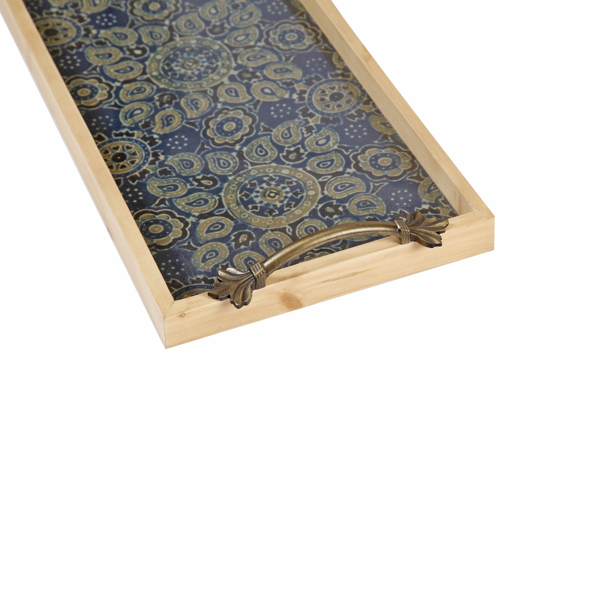 A Tiny Mistake Blue Modal Pine Tray with Handle Serving Pine Wood Tray