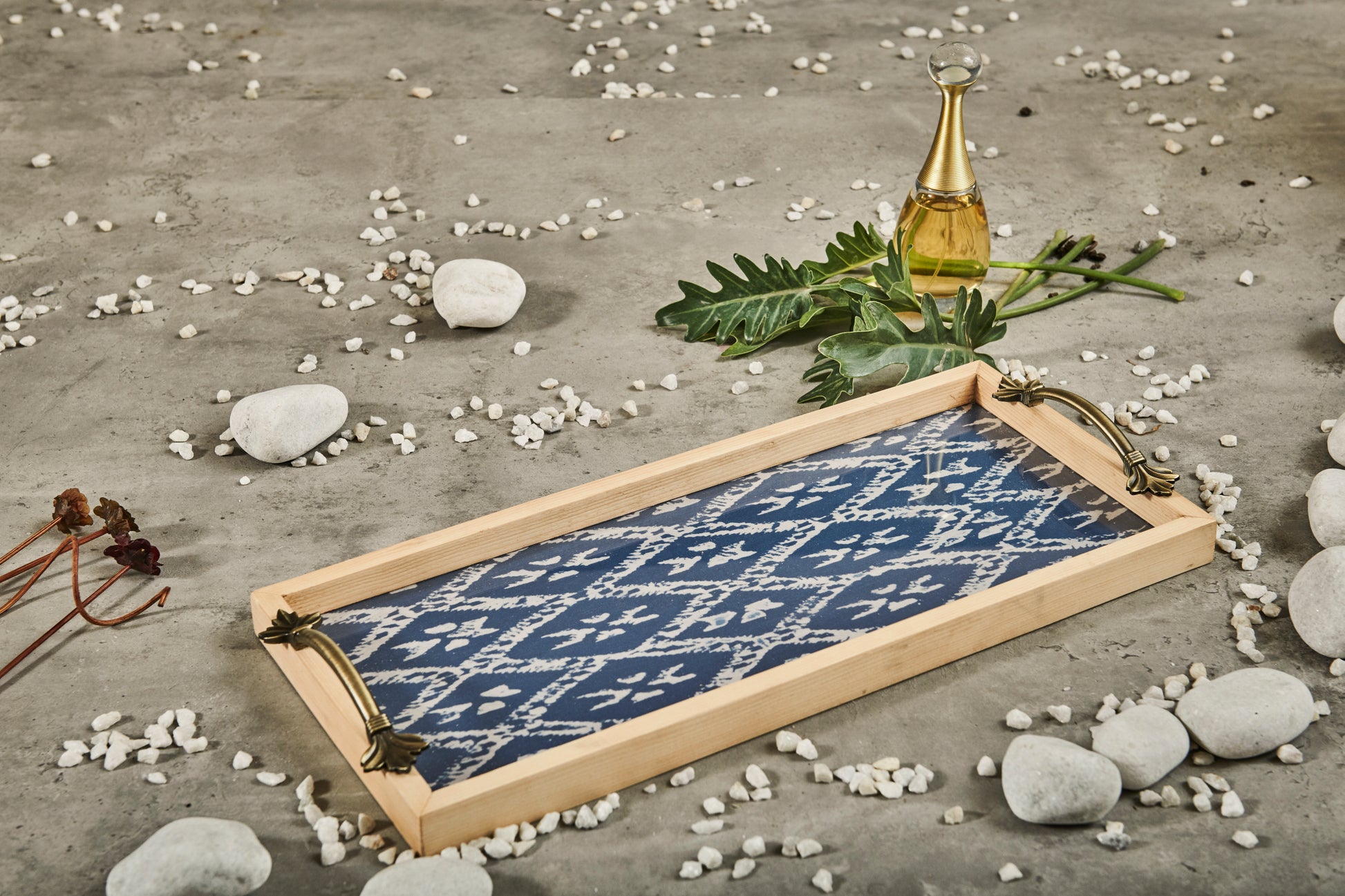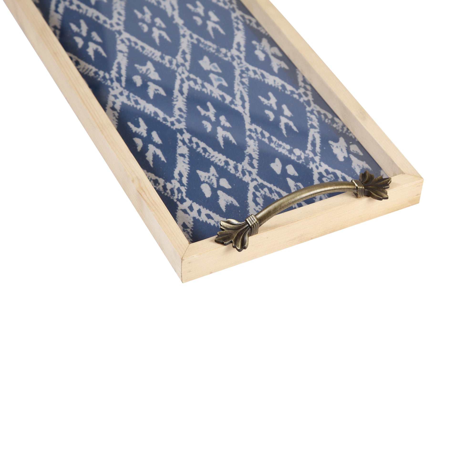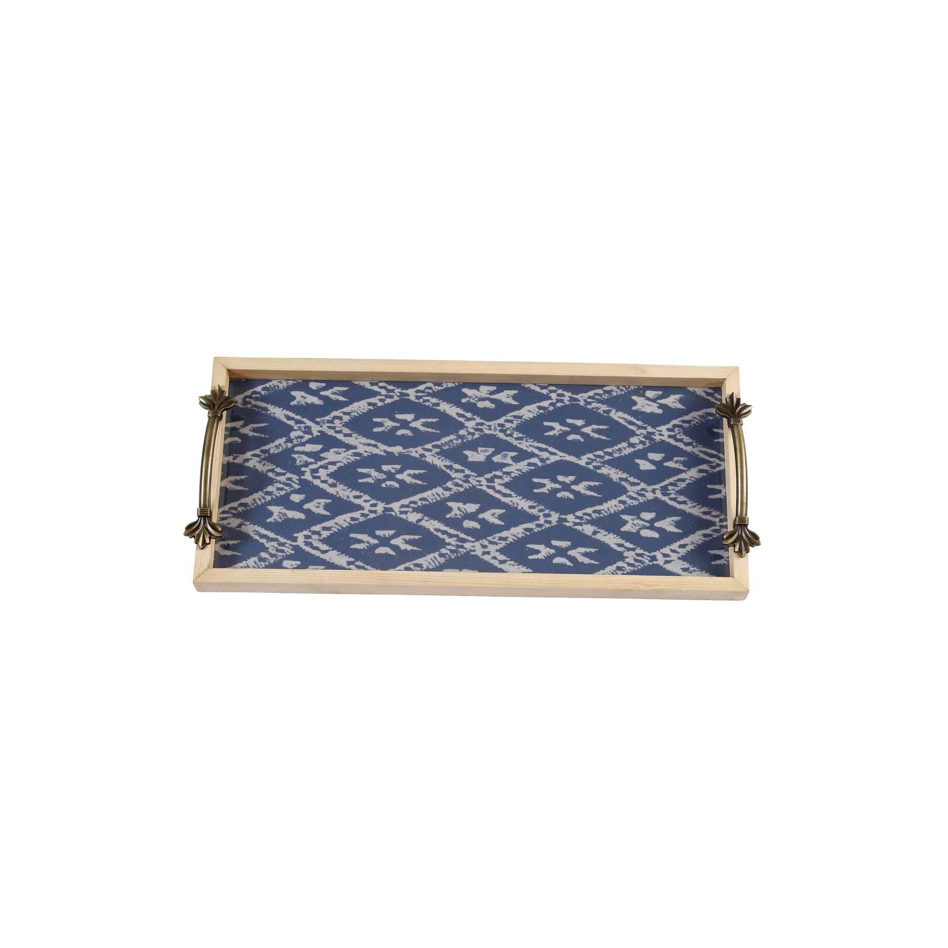 A Tiny Mistake Blue Diamond Pine Tray with Handle Serving Pine Wood Tray