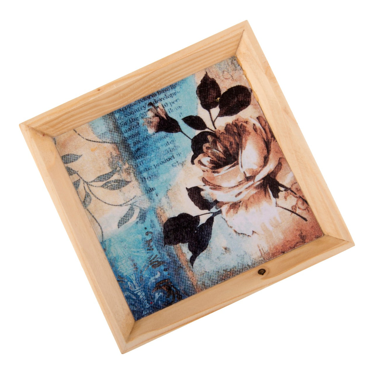 A Tiny Mistake Blue Floral Pattern Wooden Serving Tray, 18cm x 18cm x 2cm