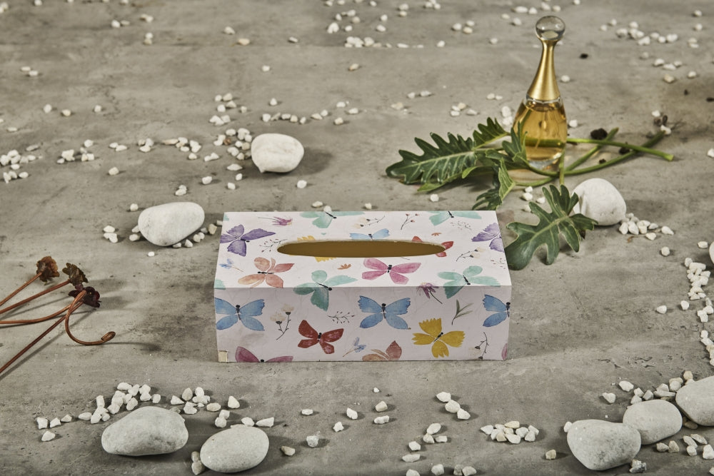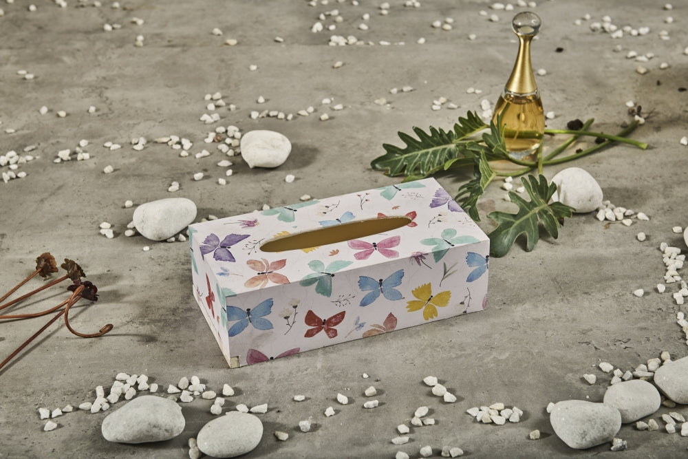 A Tiny Mistake Butterflies Tissue Box, 18 x 18 x 7.5 cm