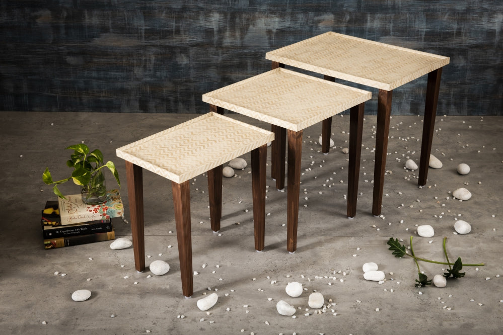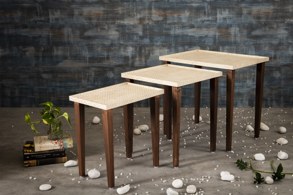 A Tiny Mistake Chevron Teal Wooden Rectangle Nesting Tables (Set of 3), Living Room Decor