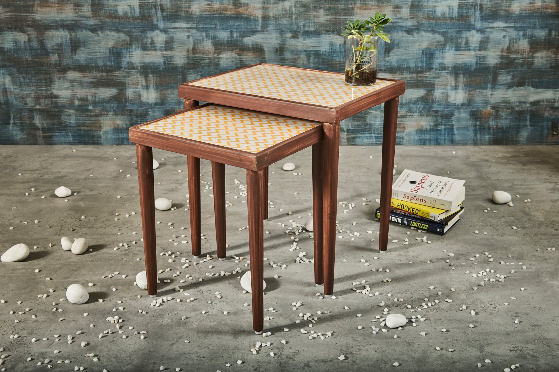 A Tiny Mistake Chevron Yellow Rectangle Nesting Tables (Set of Two)