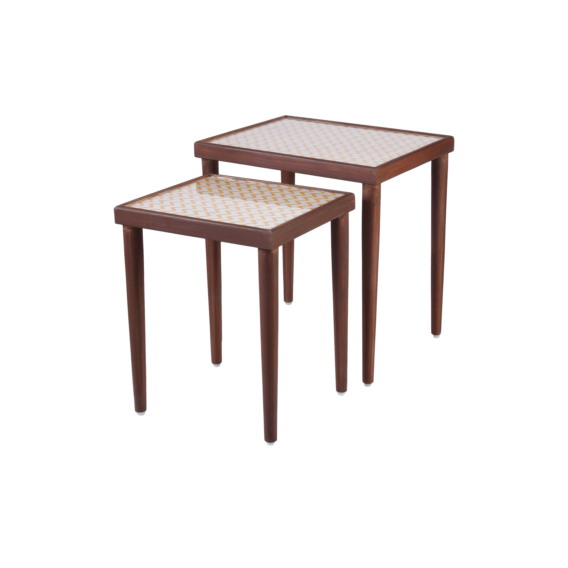 MADE IN INDIA: Our elegant Rectangle Nesting Tables with Chevron Prints are a must have if you want to step up your living room decor. Nesting tables in the truest sense ever, these tables fit perfectly under each other and look lovely kept closed and open both. Order your own personal set to realise how beautiful they look. Our team of artisans handcraft these products with a lot of love in our workshop. We design and manufacture our product range in India.