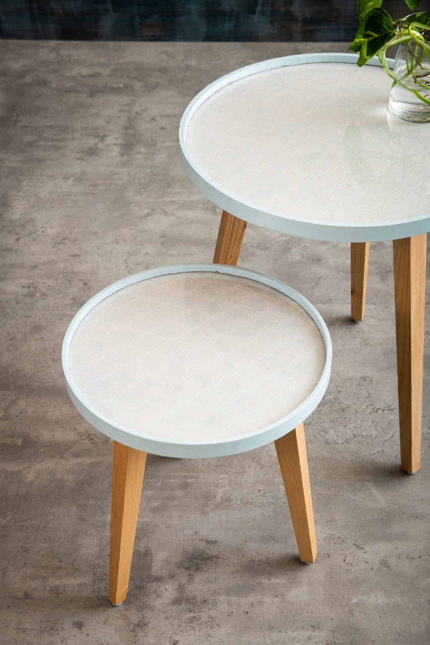 A Tiny Mistake Copper and Blue Hues Wooden Nesting Tables (Set of 2), Living Room Decor