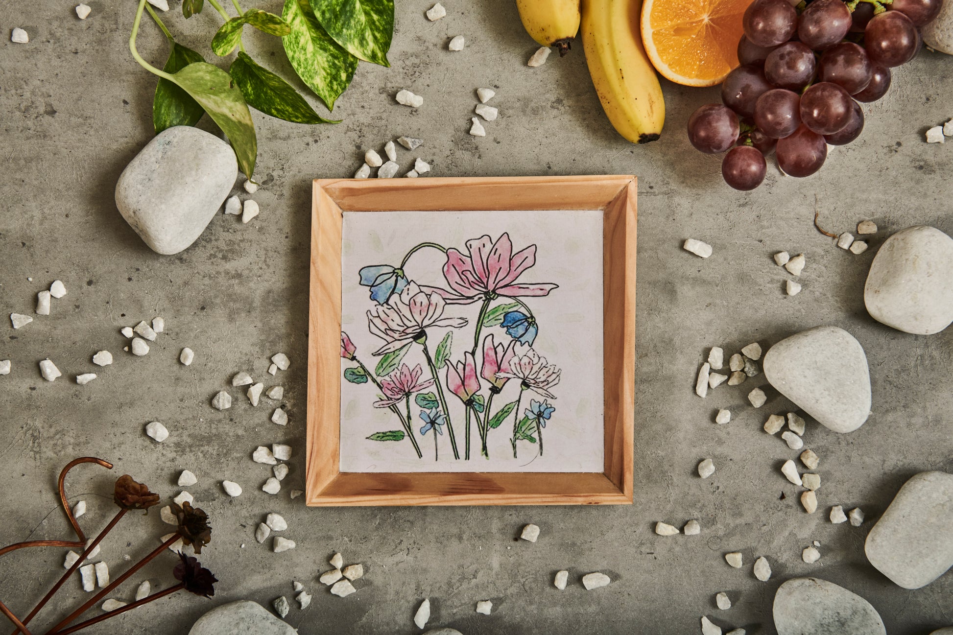 A Tiny Mistake Daisies Small Square Wooden Serving Tray, 18 x 18 x 2 cm
