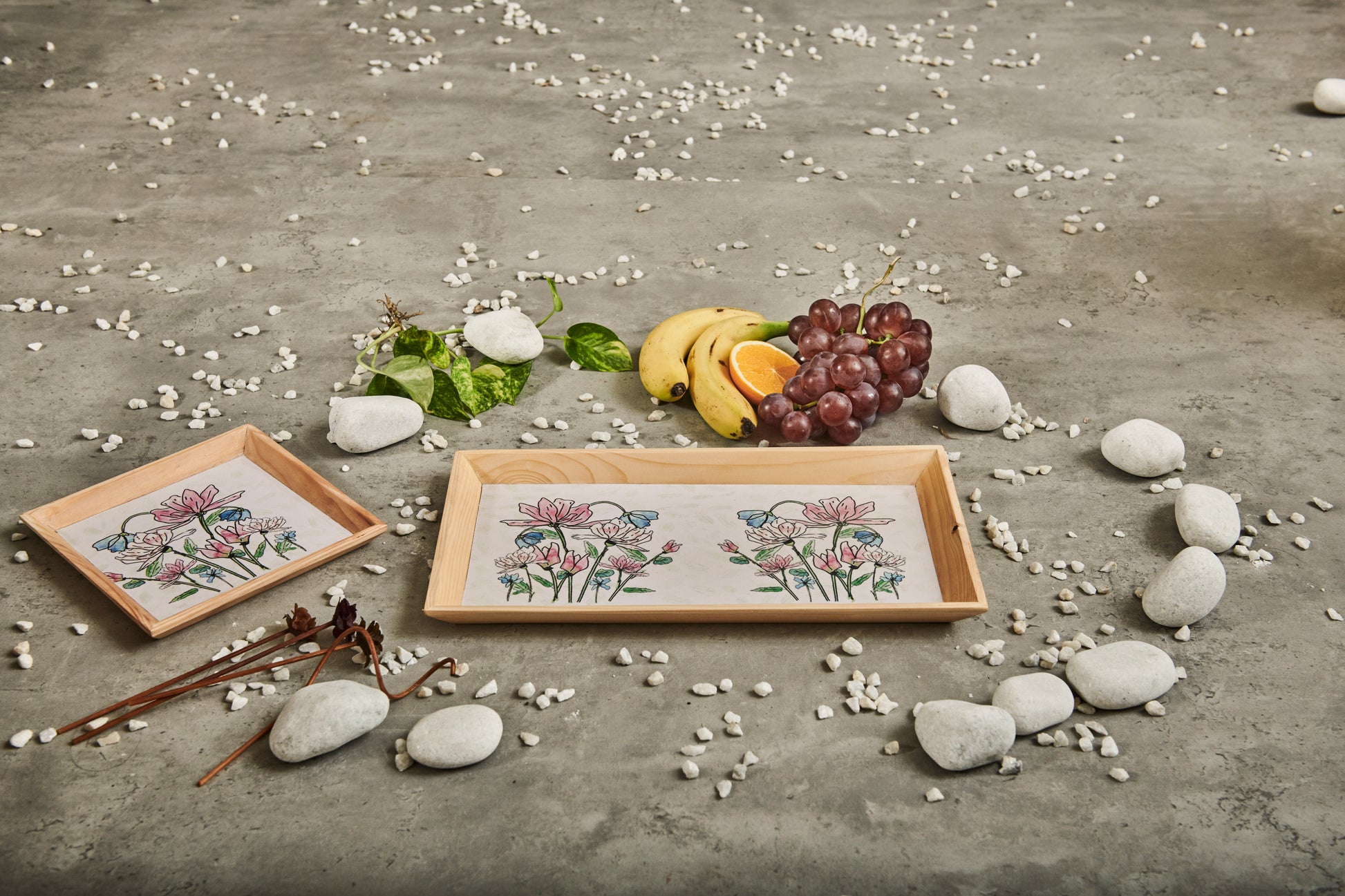 MATERIAL CARE: Made using Pine Wood, these trays are lightweight and very handy to use. Perfect for serving water, tea & coffee, these trays are good for everyday use.These trays can be cleaned by wiping with a damp cloth. They will repel water but cannot be washed under running water or with soap.