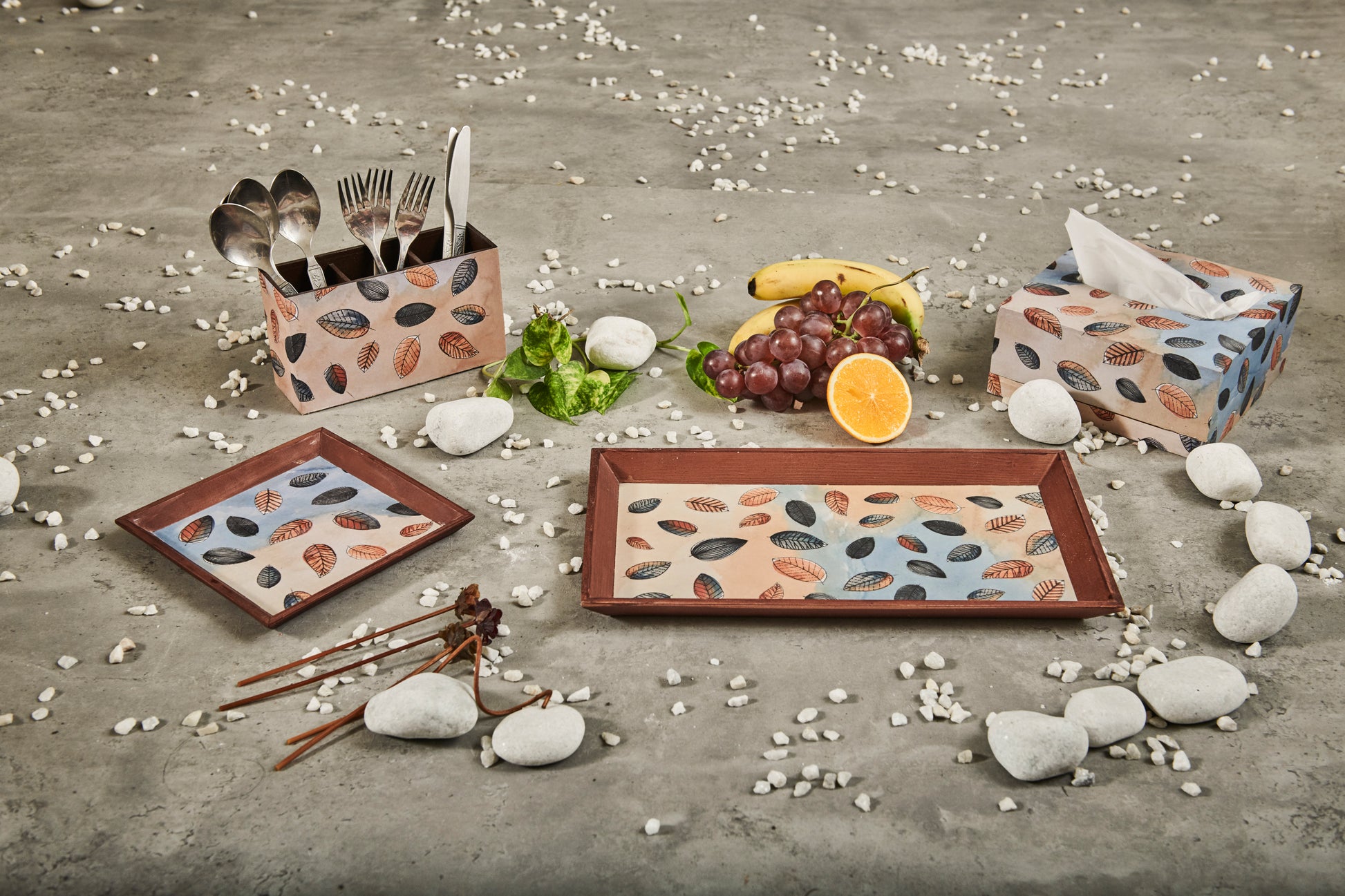 ALIGNED PRODUCTS: Matching cutlery holders, coasters, tissue boxes as well as other sizes of trays available.