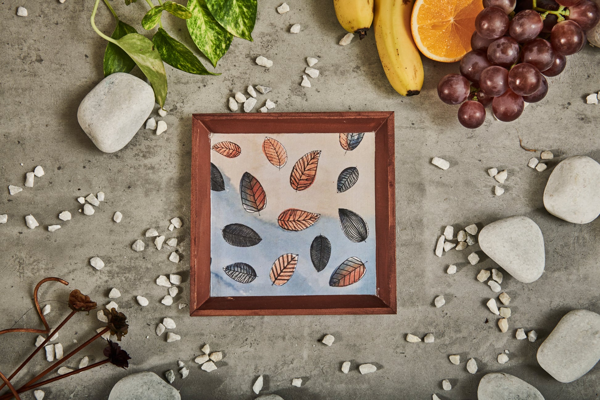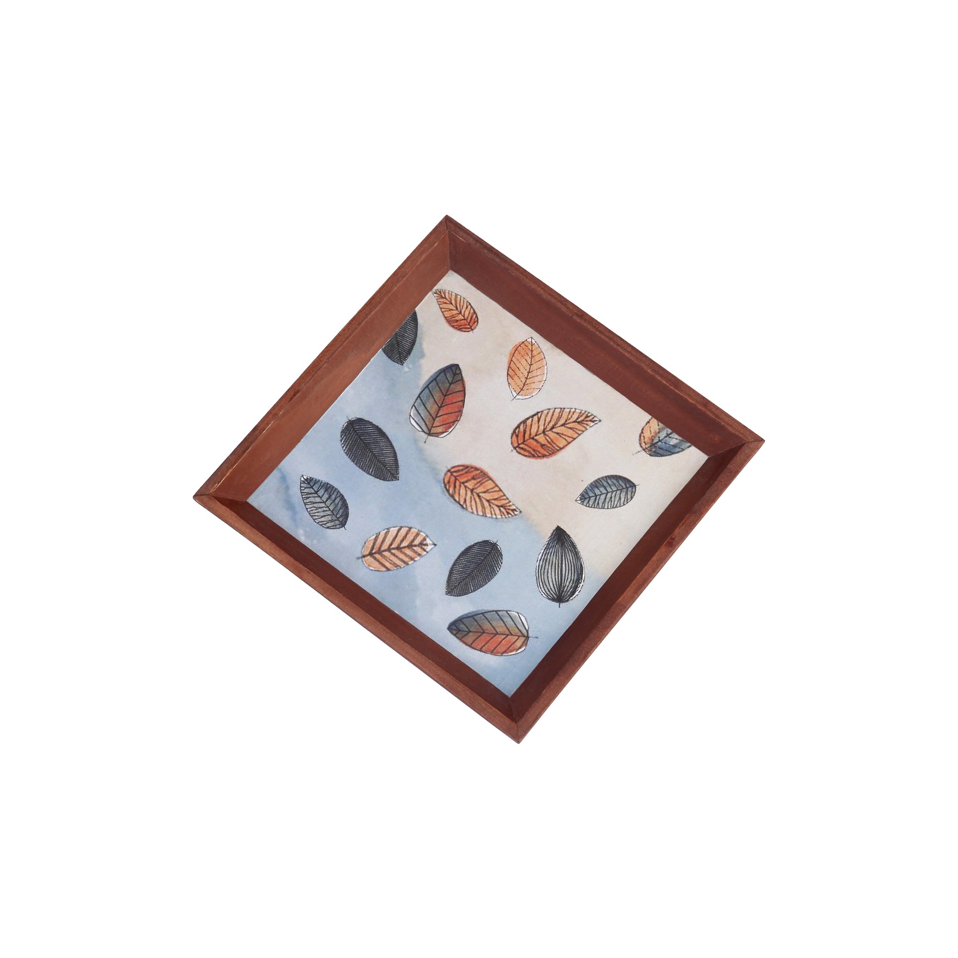 A Tiny Mistake Fall Leaves Small Square Wooden Serving Tray, 18 x 18 x 2 cm