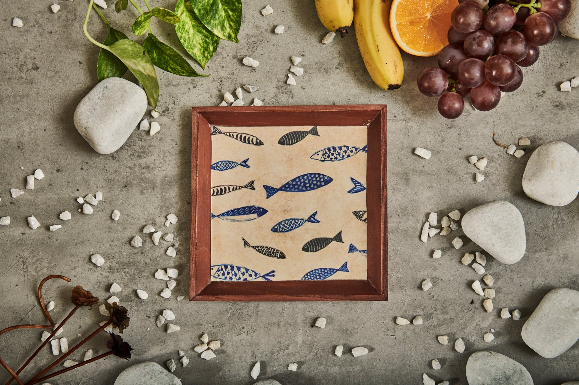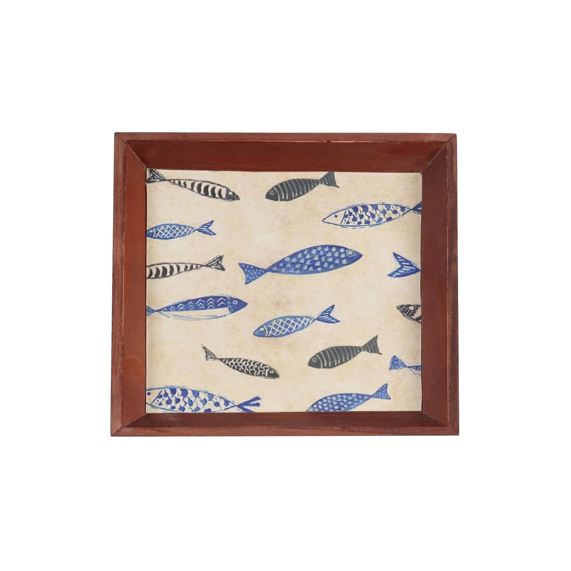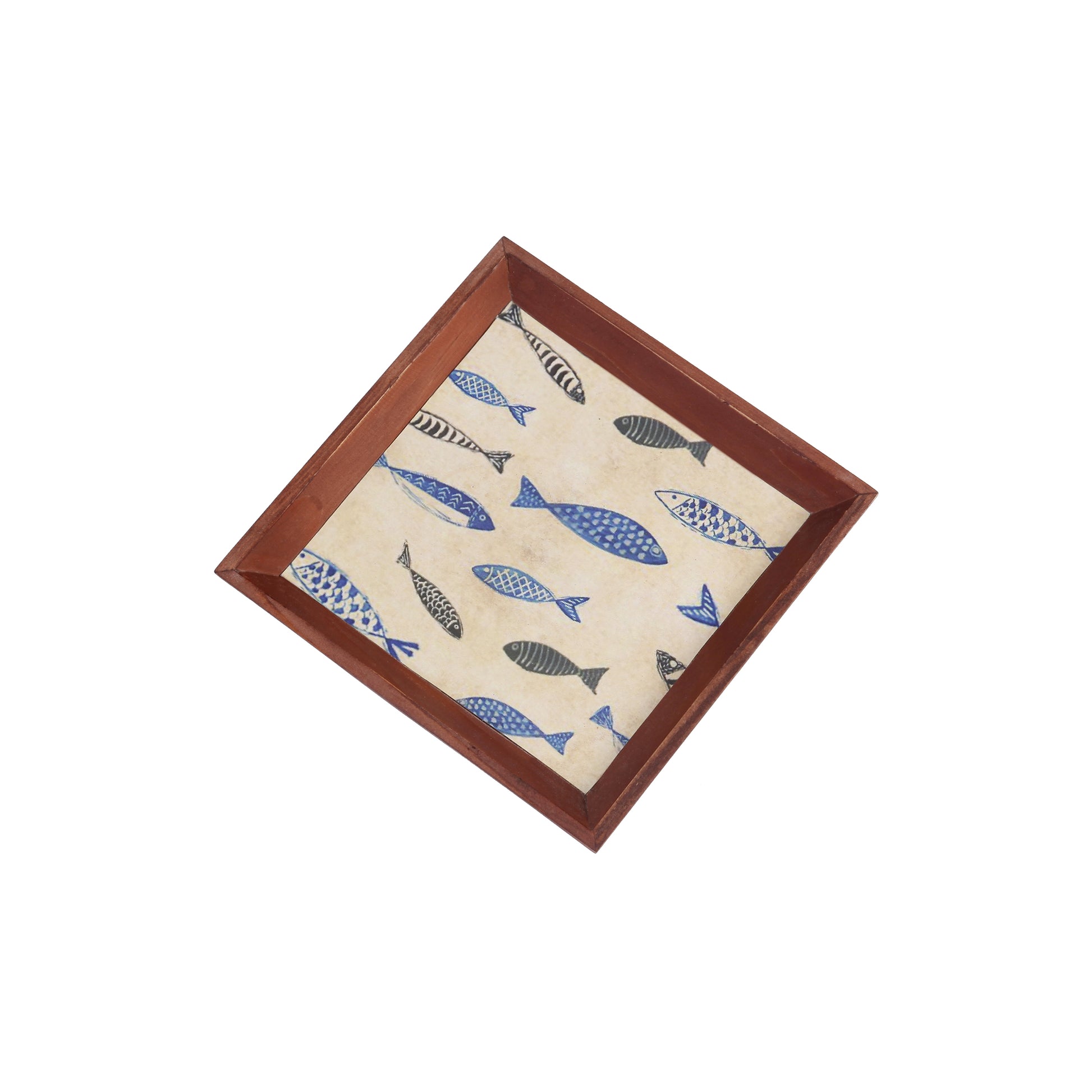 A Tiny Mistake Fish Small Square Wooden Serving Tray, 18 x 18 x 2 cm