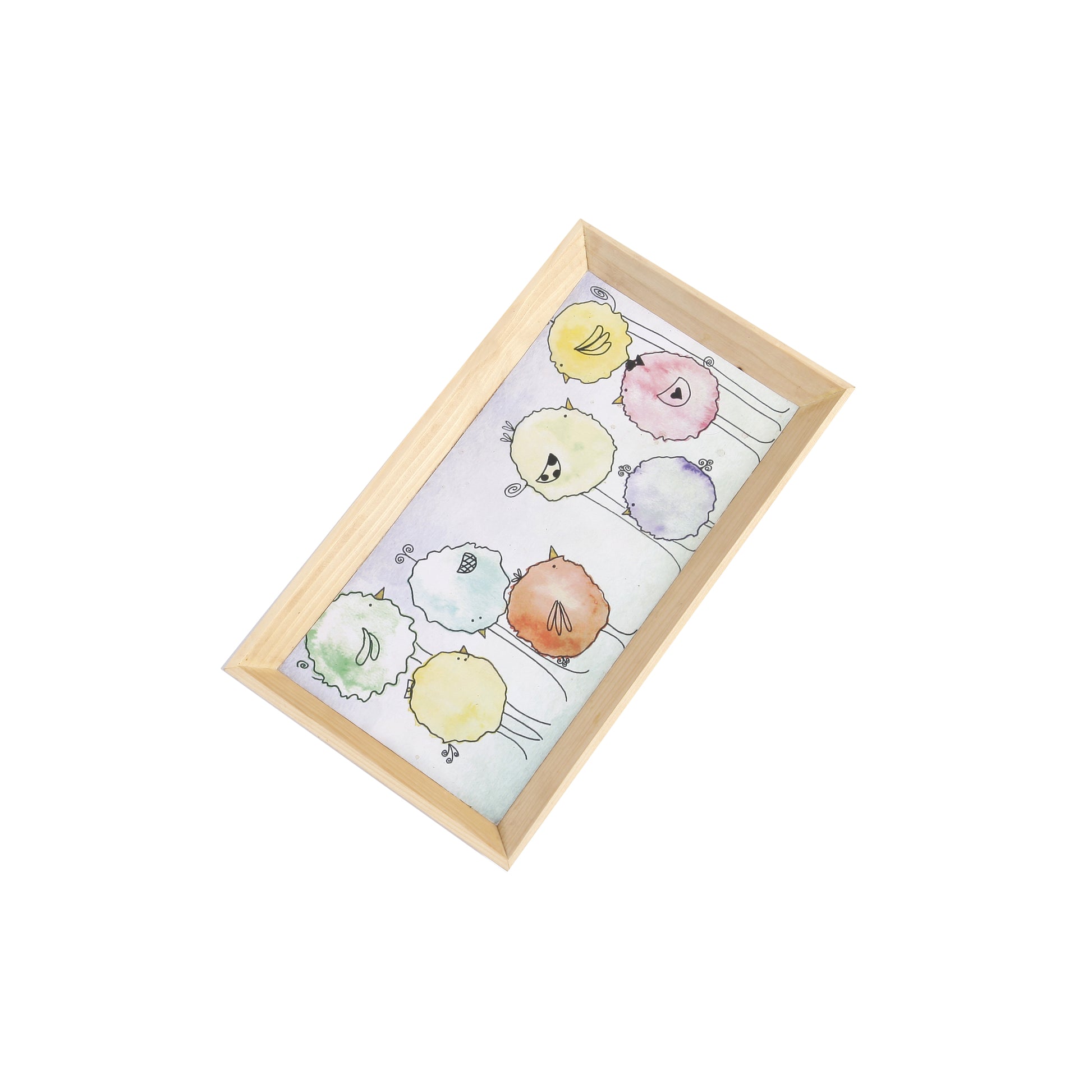 A Tiny Mistake Floral Caricature Birds Rectangle Wooden Serving Tray, 35 x 20 x 2 cm