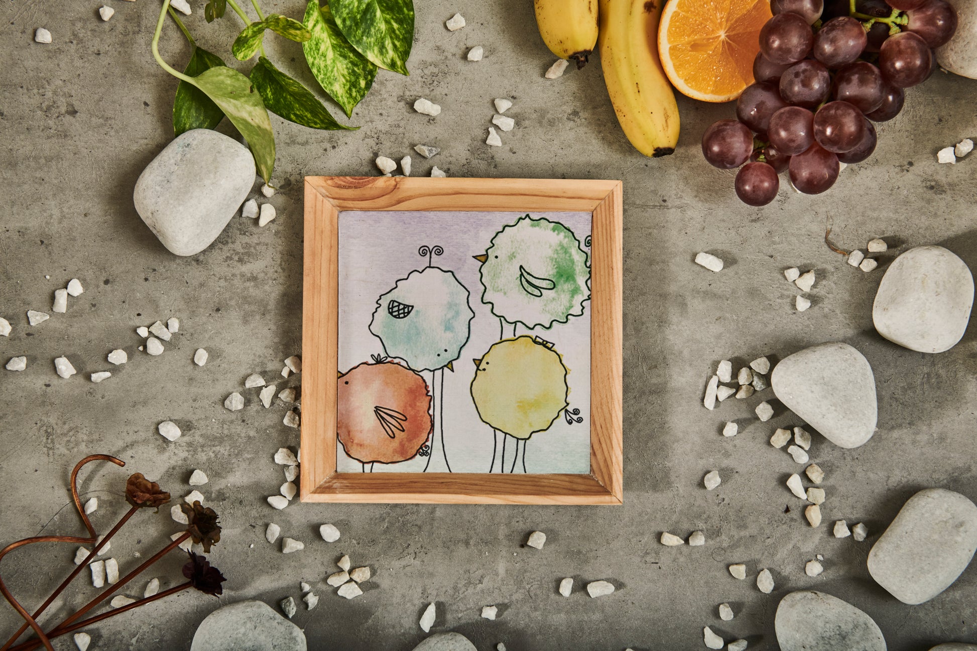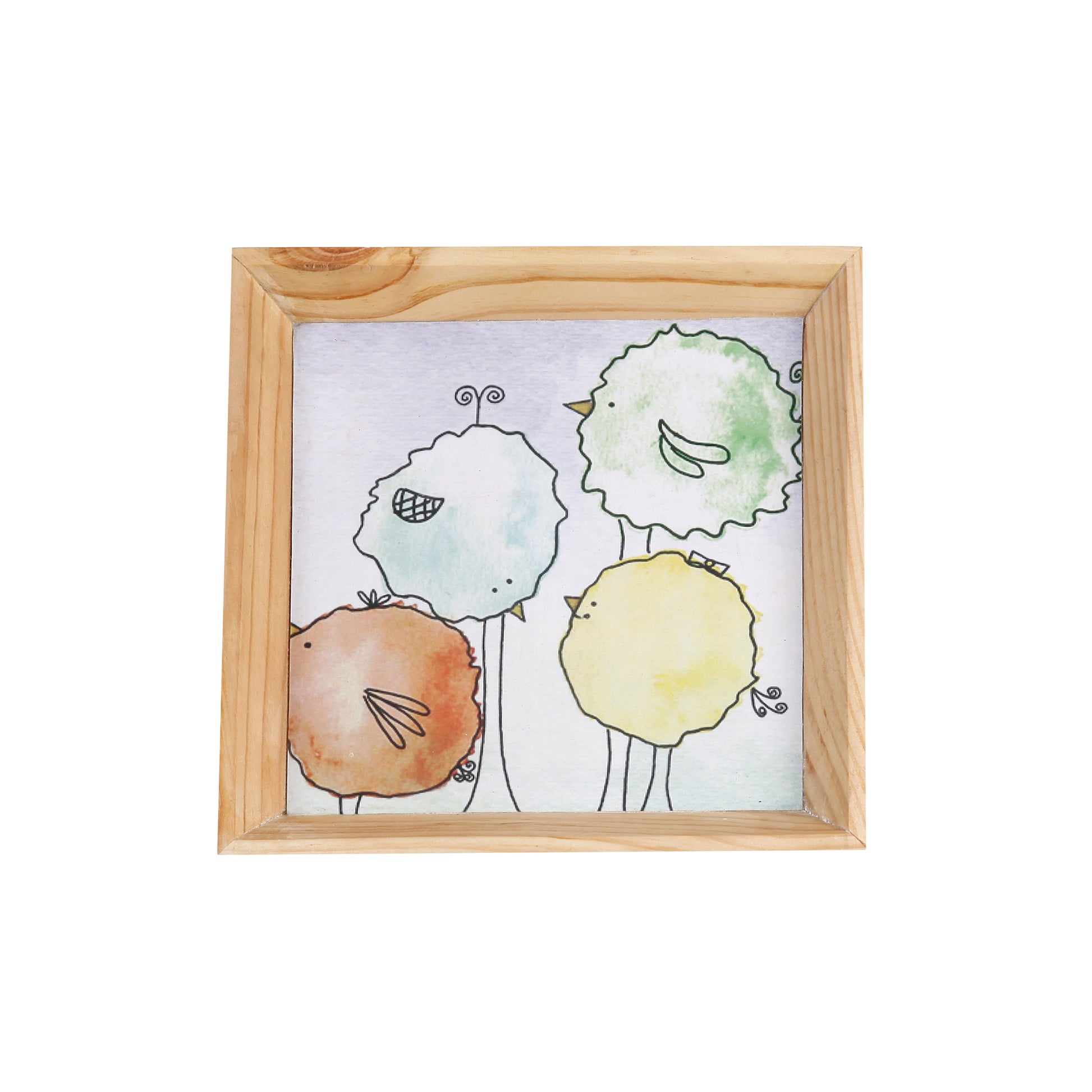 A Tiny Mistake Floral Caricature Birds Small Square Wooden Serving Tray, 18 x 18 x 2 cm