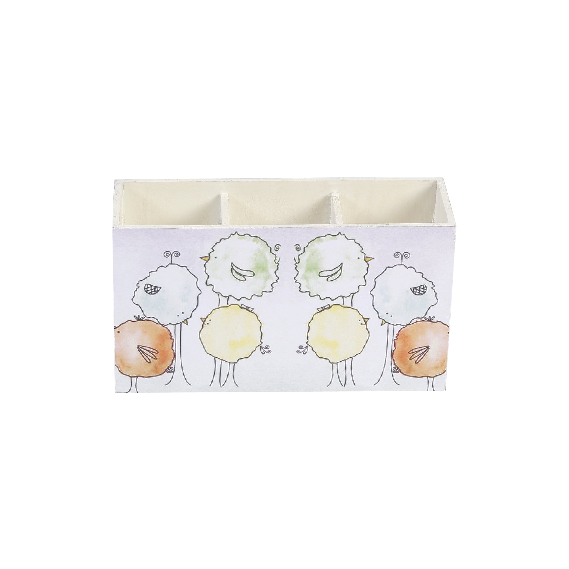 A Tiny Mistake Floral Caricature Birds Wooden Cutlery Holder, 18 x 10 x 6.5 cm