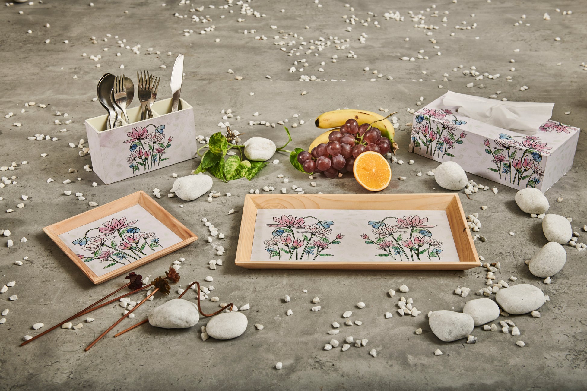 ALIGNED PRODUCTS: Matching cutlery holders, coasters, tissue boxes as well as other sizes of trays available.