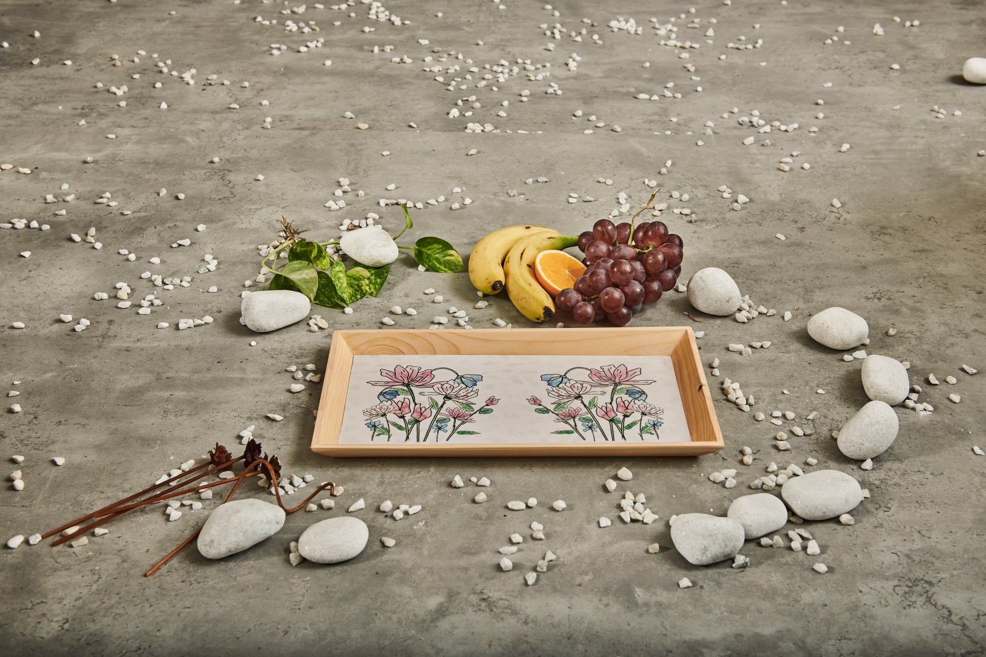 A Tiny Mistake Floral Caricature Trees Rectangle Wooden Serving Tray, 35 x 20 x 2 cm