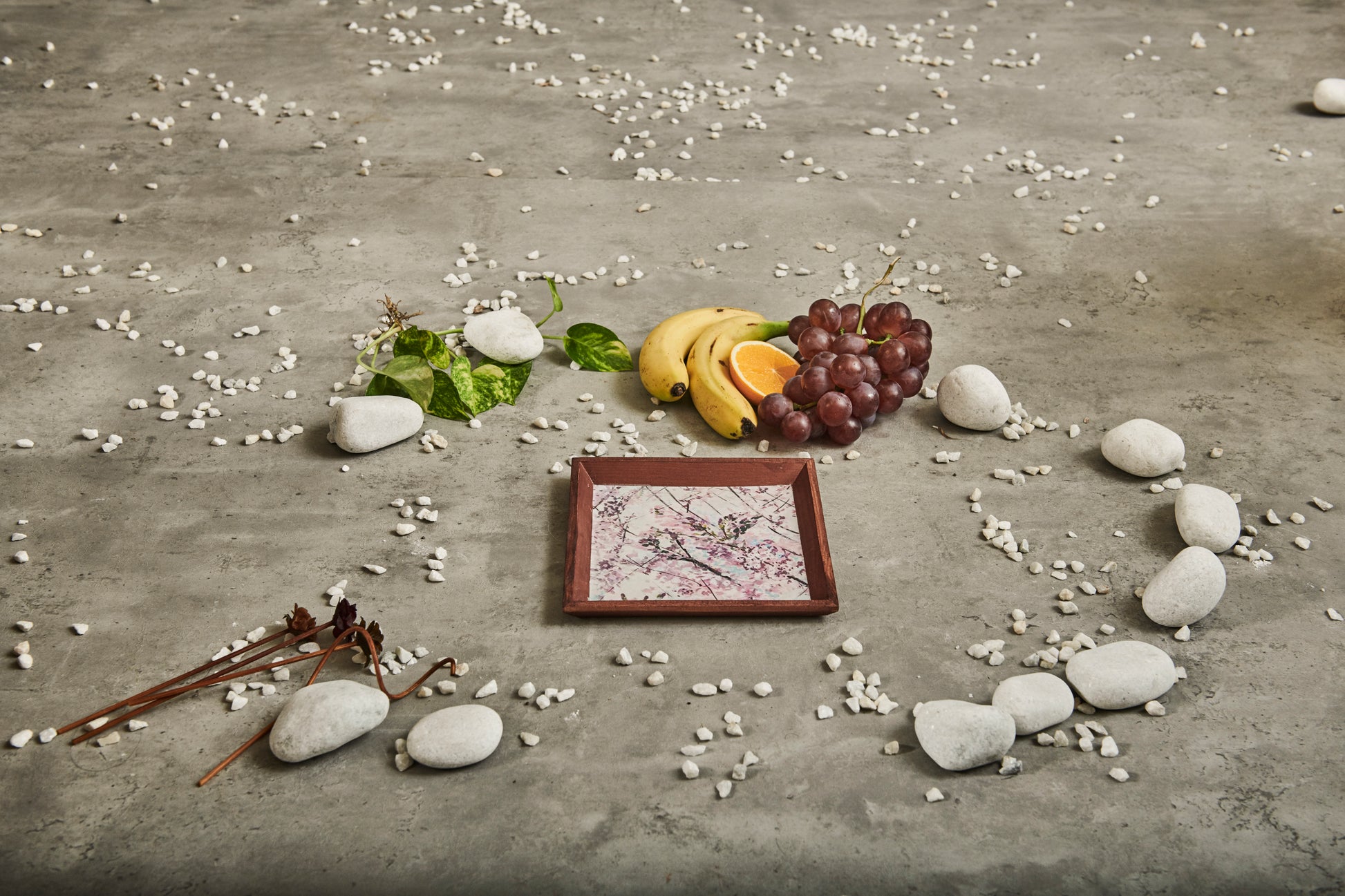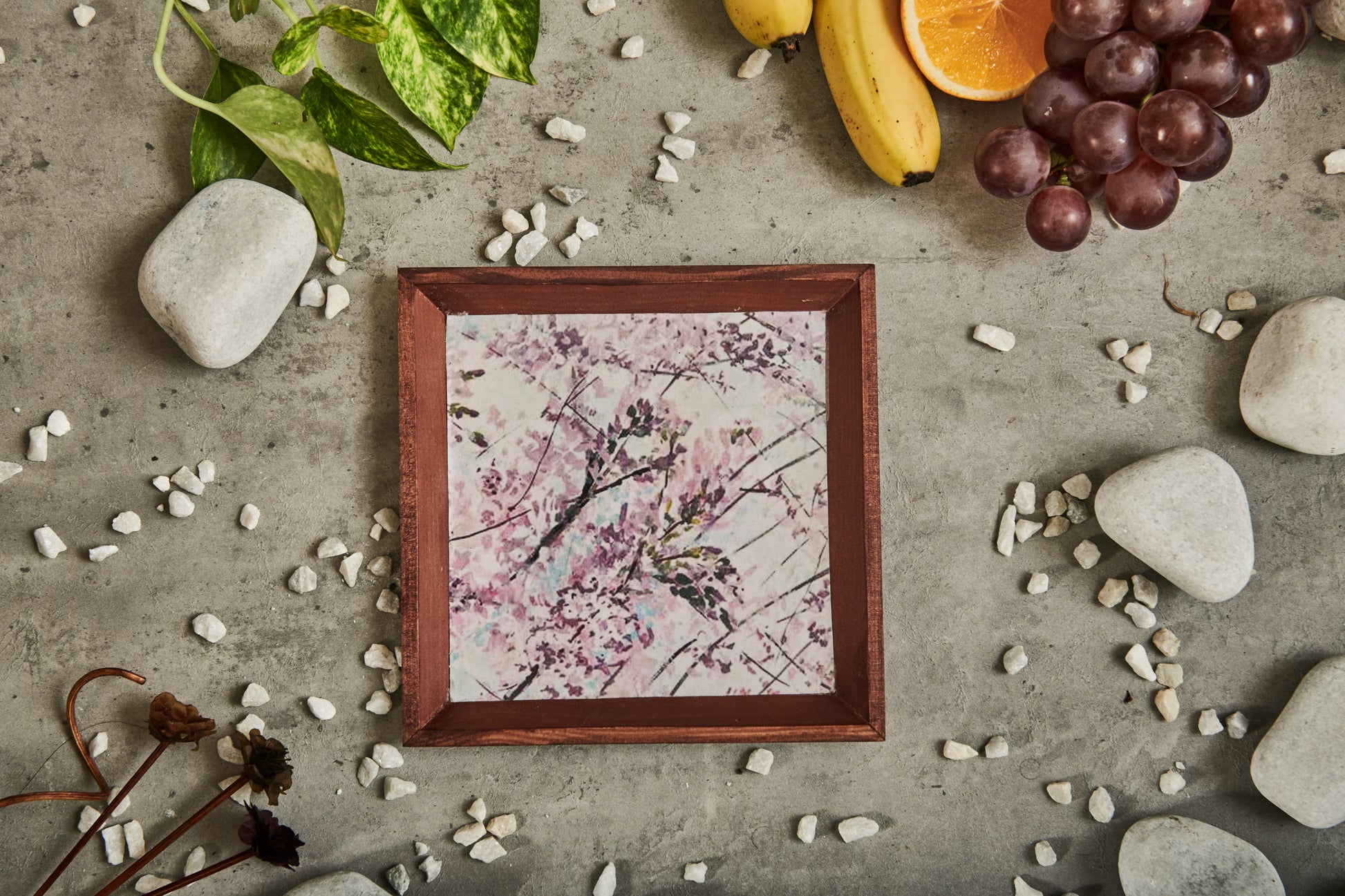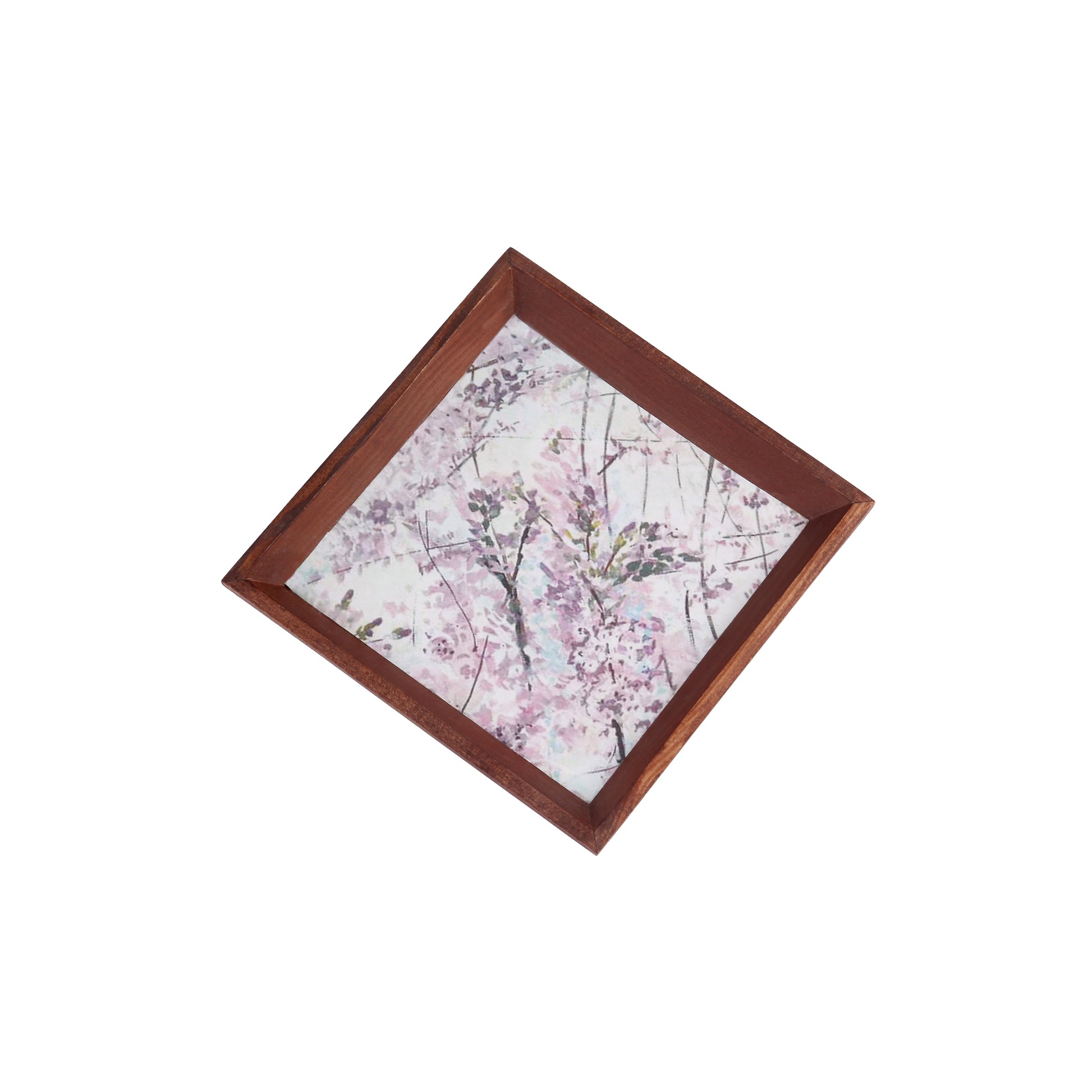 A Tiny Mistake Floral Caricature Trees Small Square Wooden Serving Tray, 18 x 18 x 2 cm
