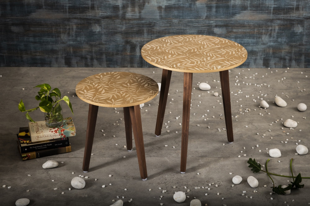 A Tiny Mistake Gold Leaves Wooden Nesting Tables (Set of 2), Living Room Decor