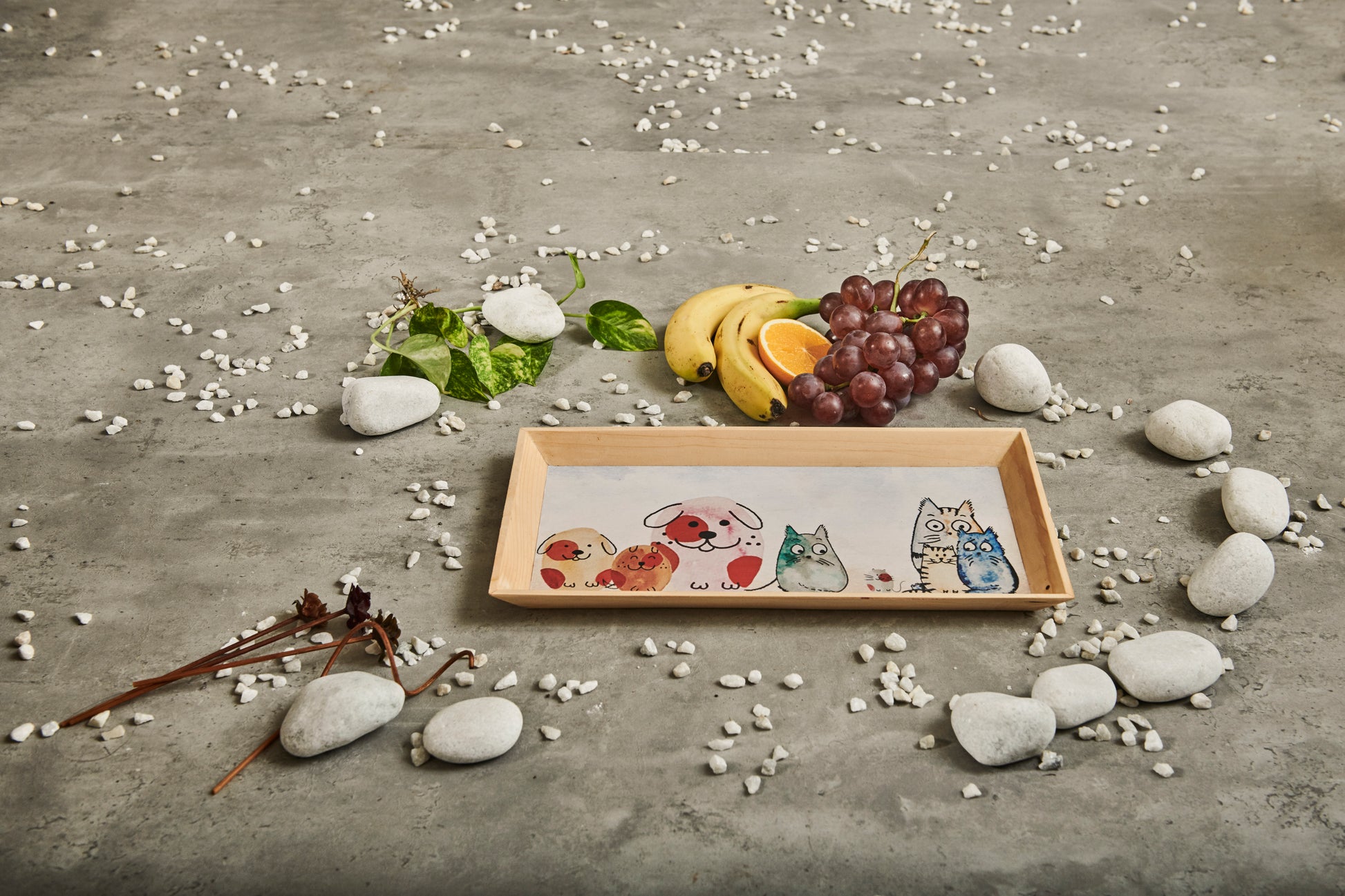 A Tiny Mistake Happy Cats Rectangle Wooden Serving Tray, 35 x 20 x 2 cm
