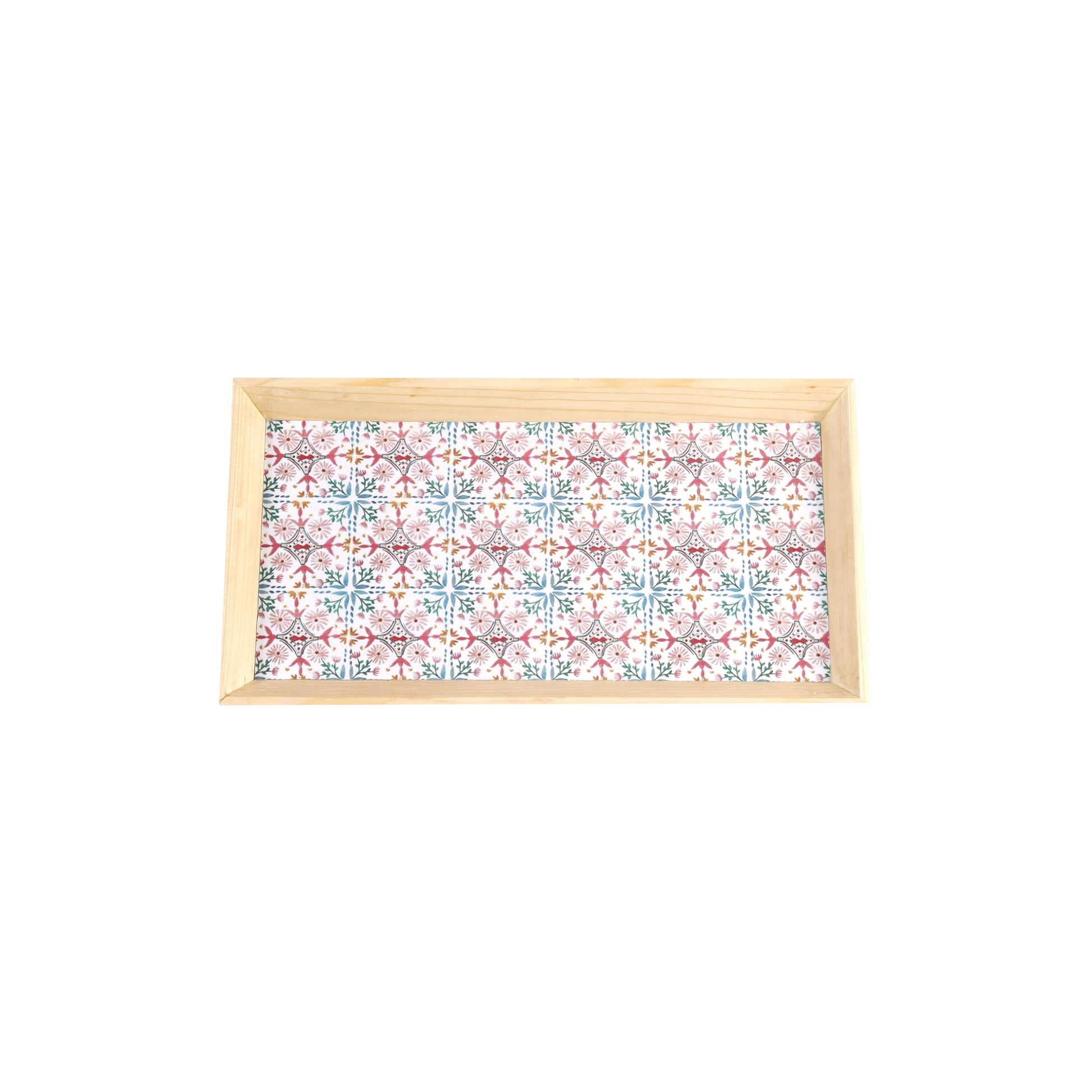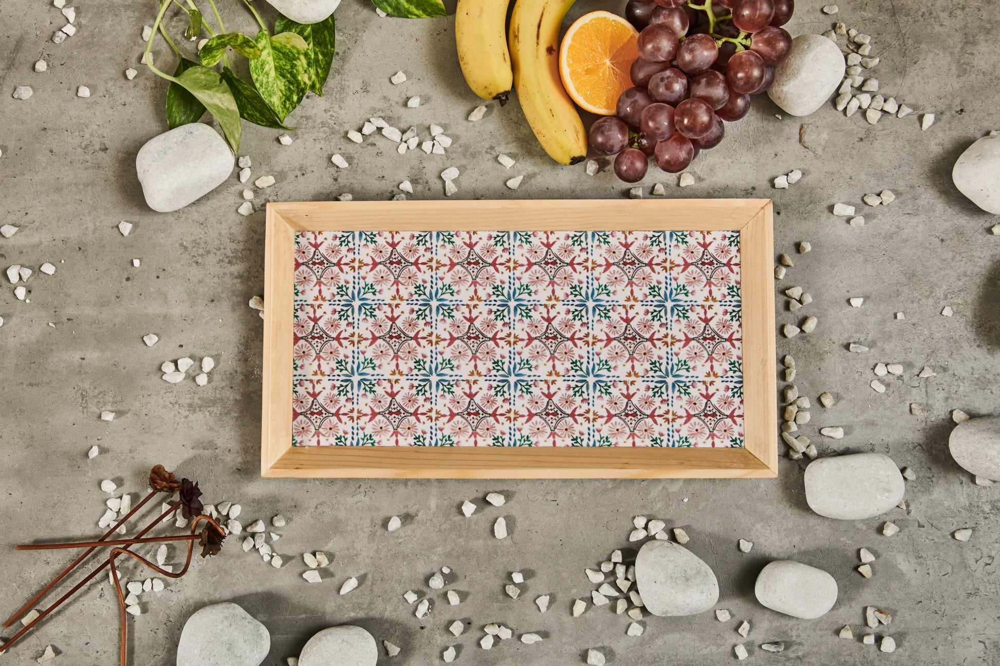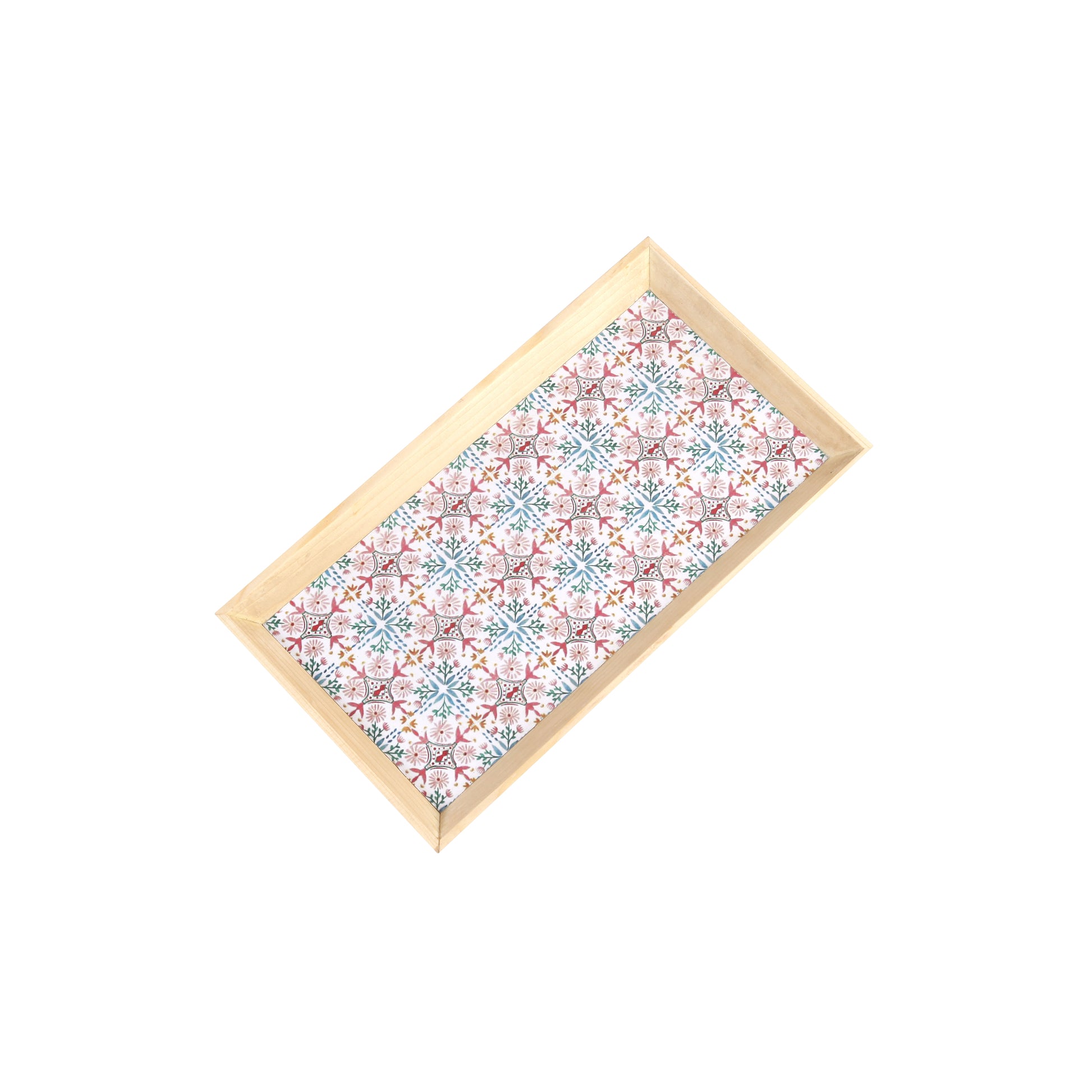 A Tiny Mistake Turkish Pink Tiles Rectangle Wooden Serving Tray, 35 x 20 x 2 cm