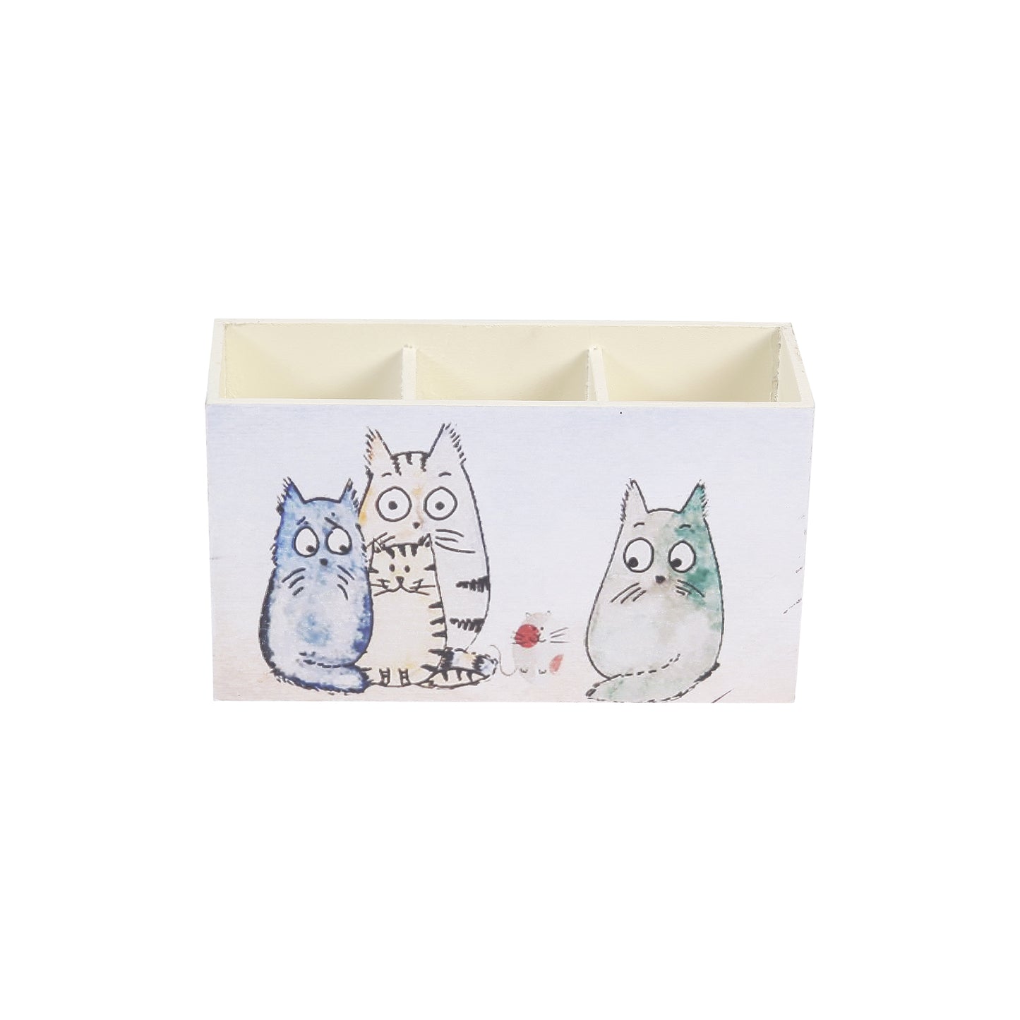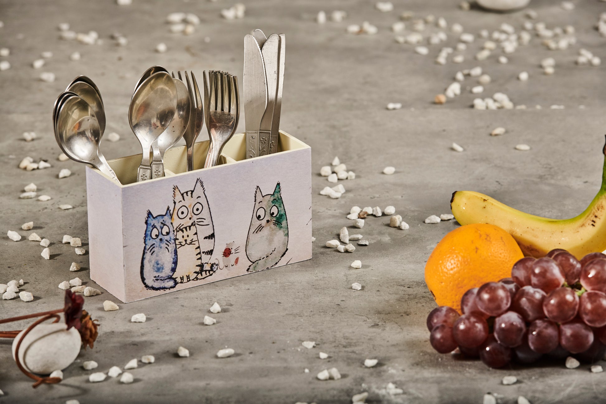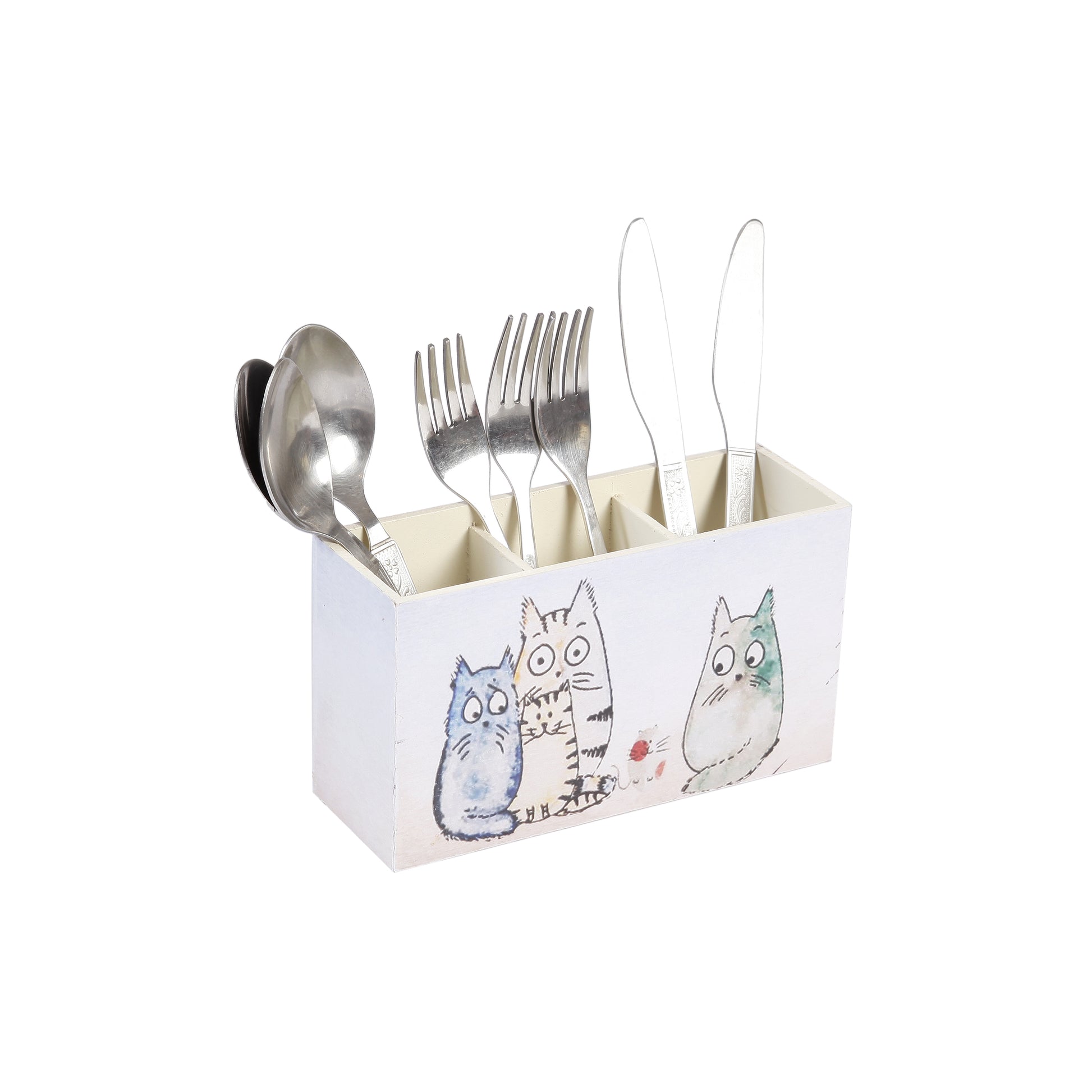 A Tiny Mistake Happy Cats Wooden Cutlery Holder, 18 x 10 x 6.5 cm