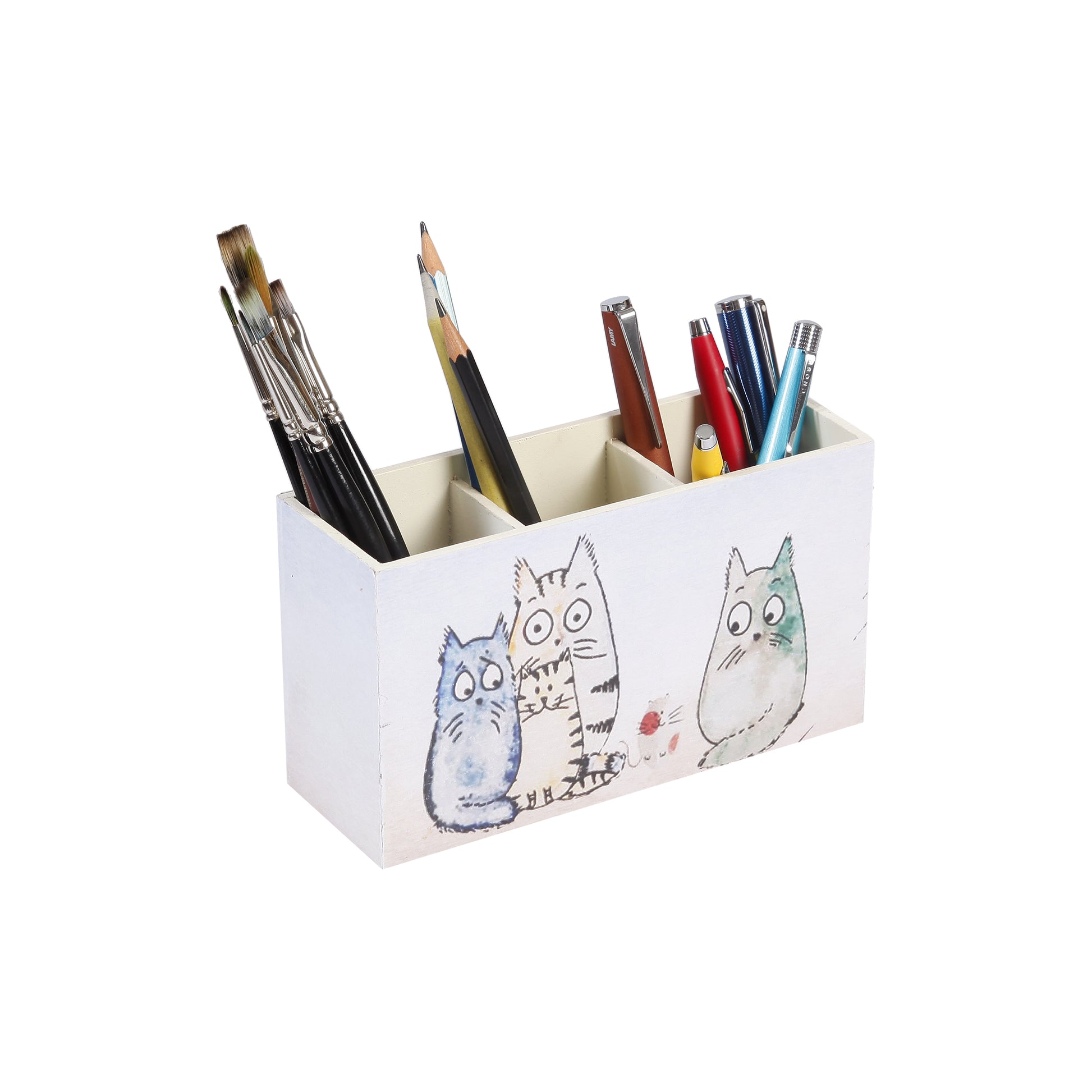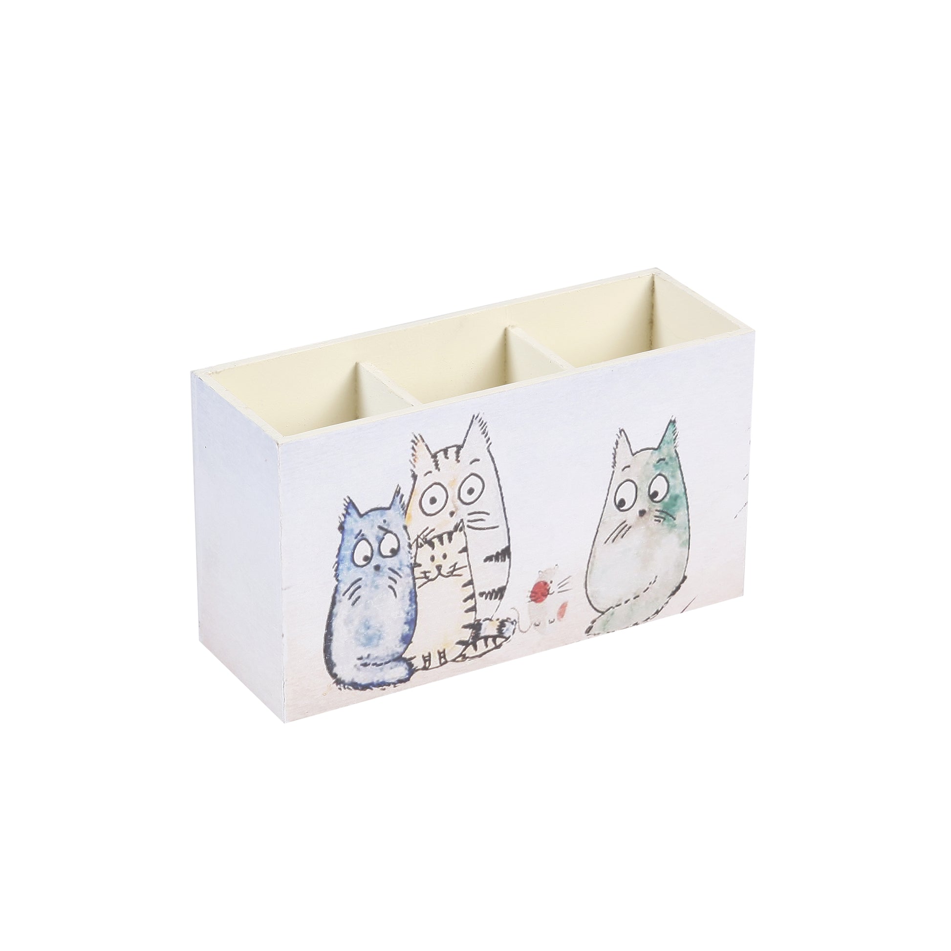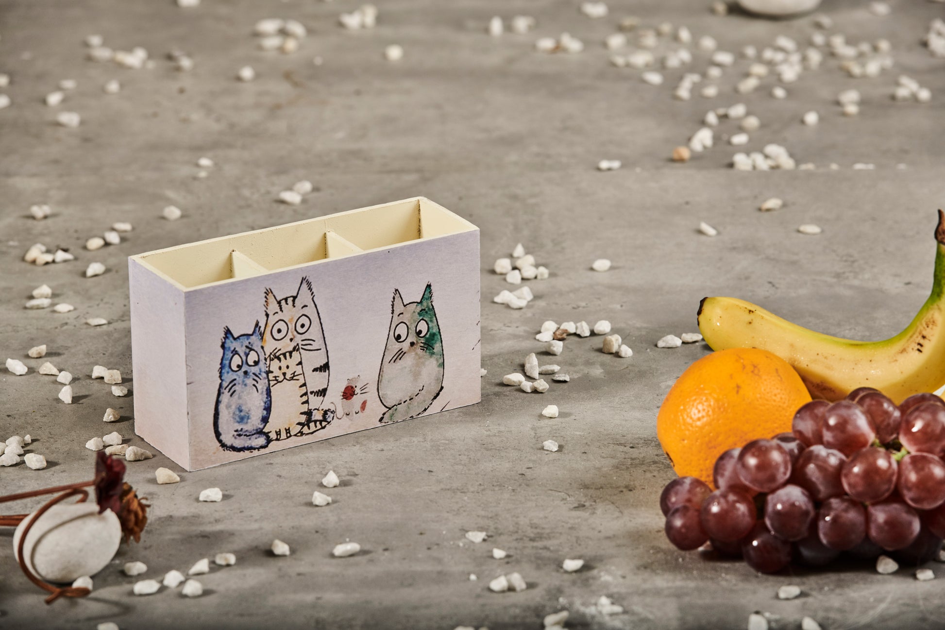A Tiny Mistake Happy Cats Wooden Cutlery Holder, 18 x 10 x 6.5 cm