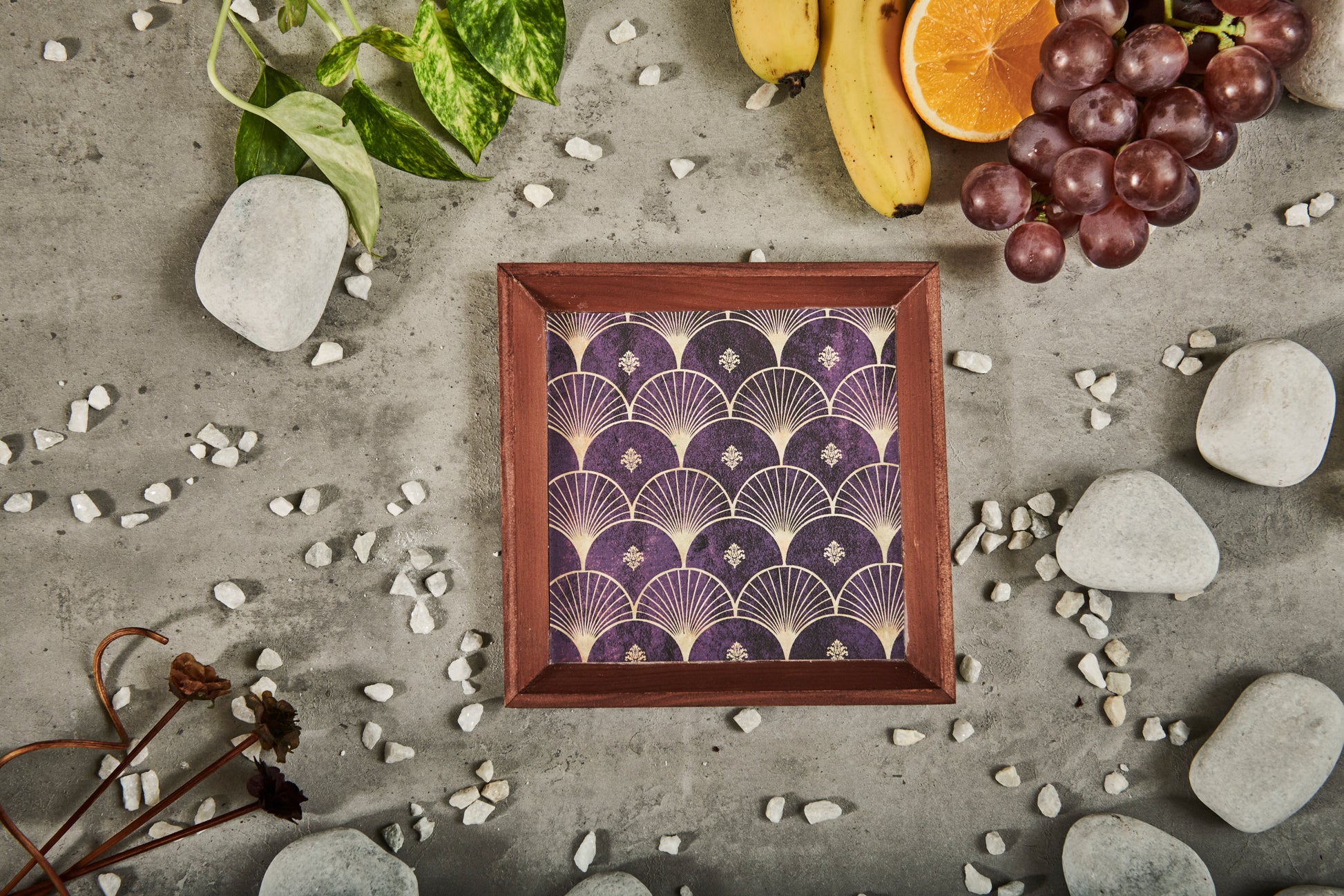 A Tiny Mistake Jamun Small Square Wooden Serving Tray, 18 x 18 x 2 cm
