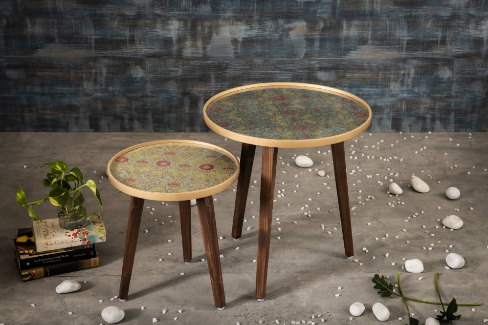 A Tiny Mistake Khimkhwab Weave Brocade Wooden Nesting Tables (Set of 2), Living Room Decor