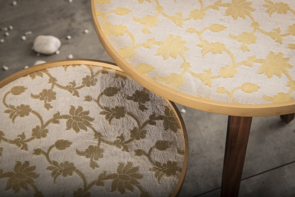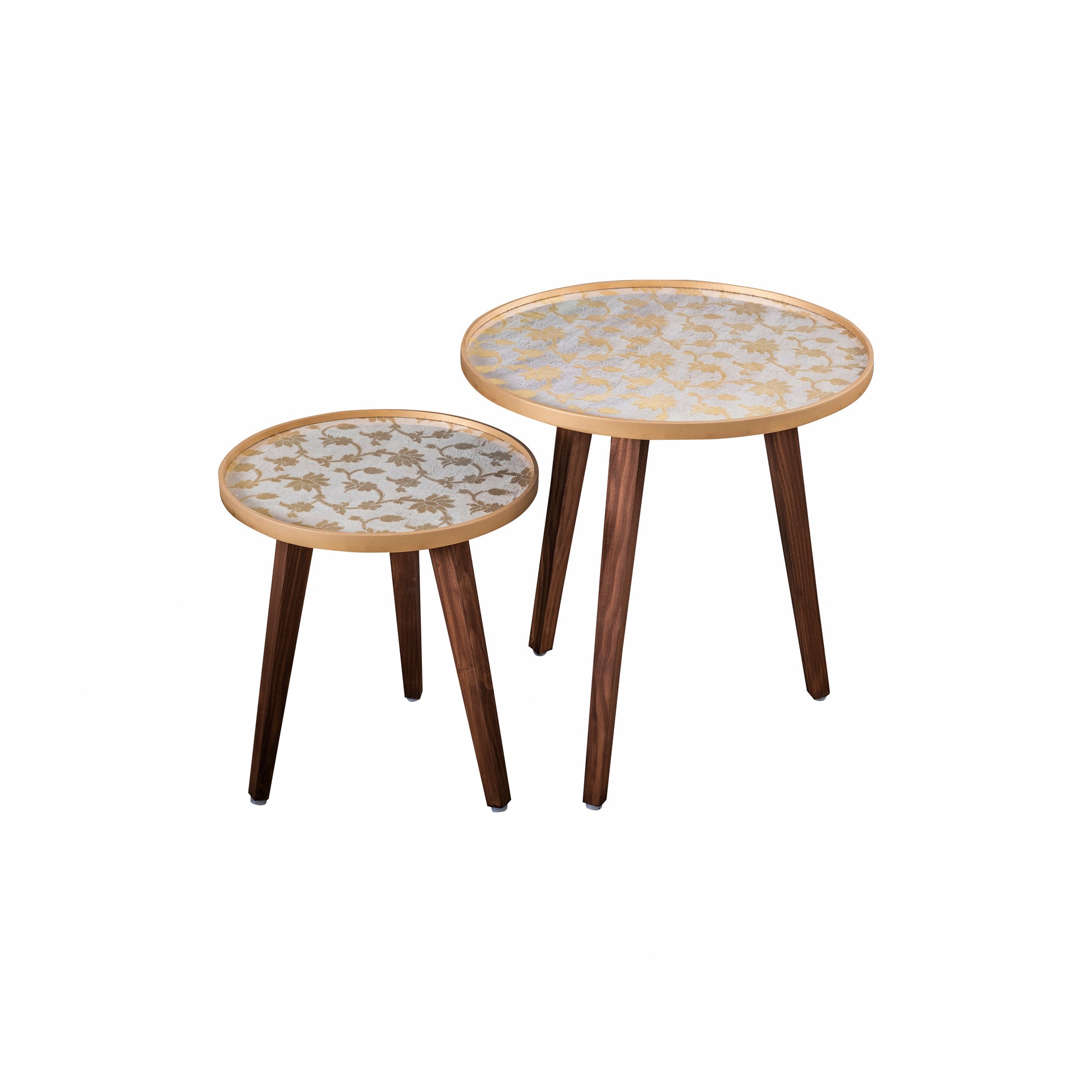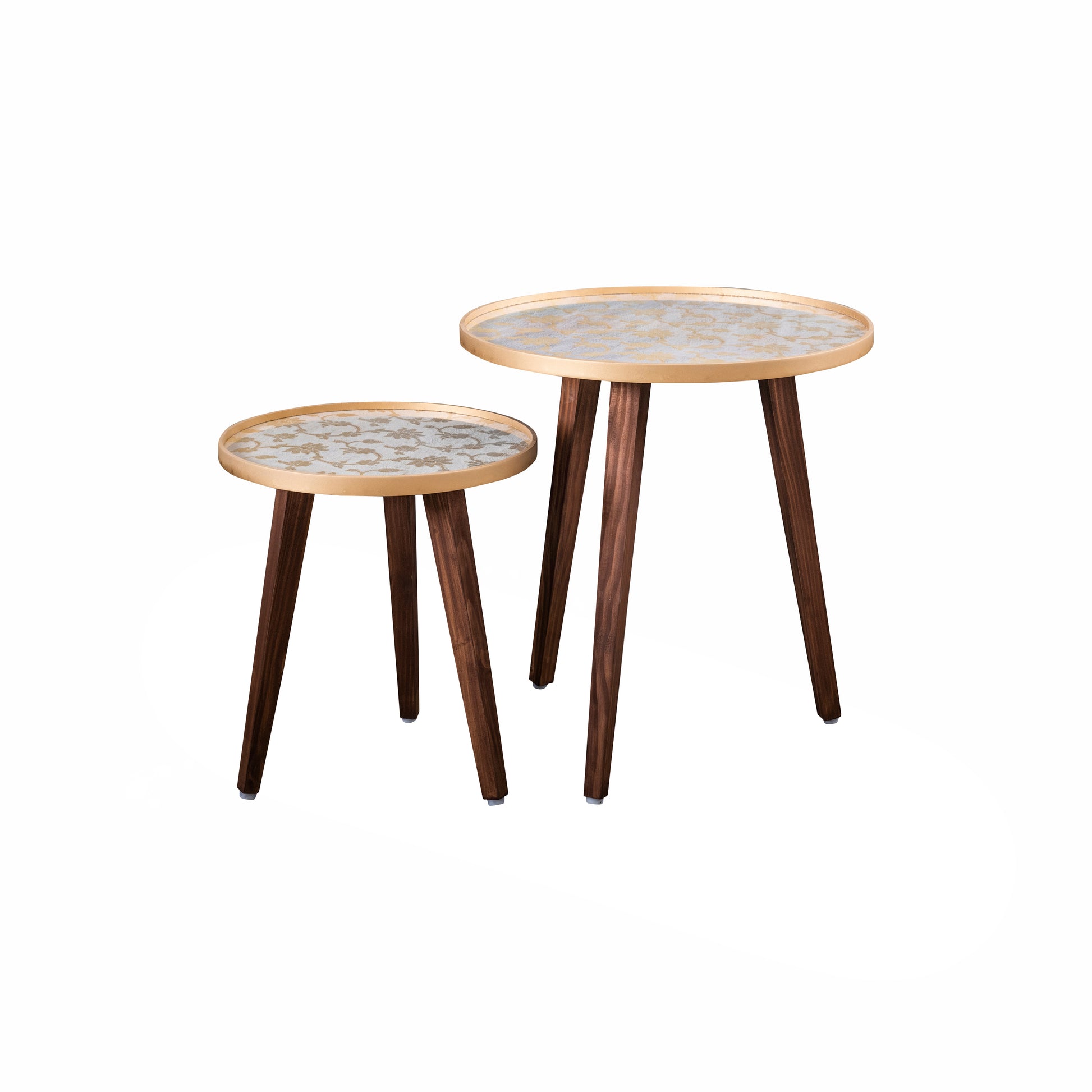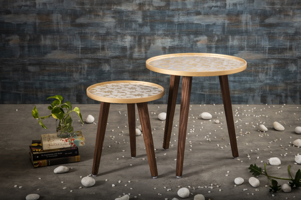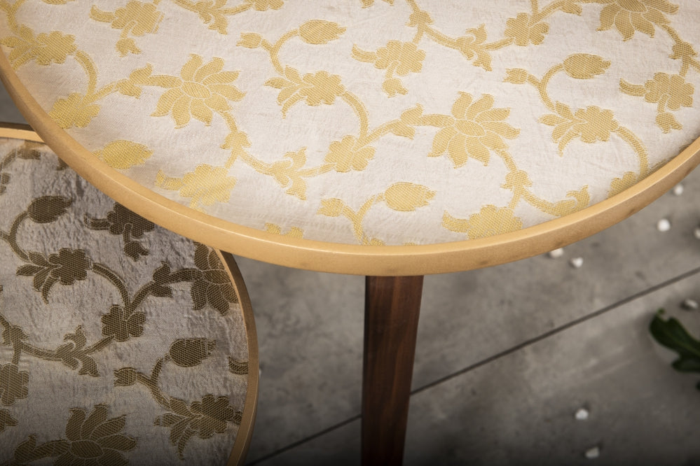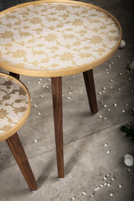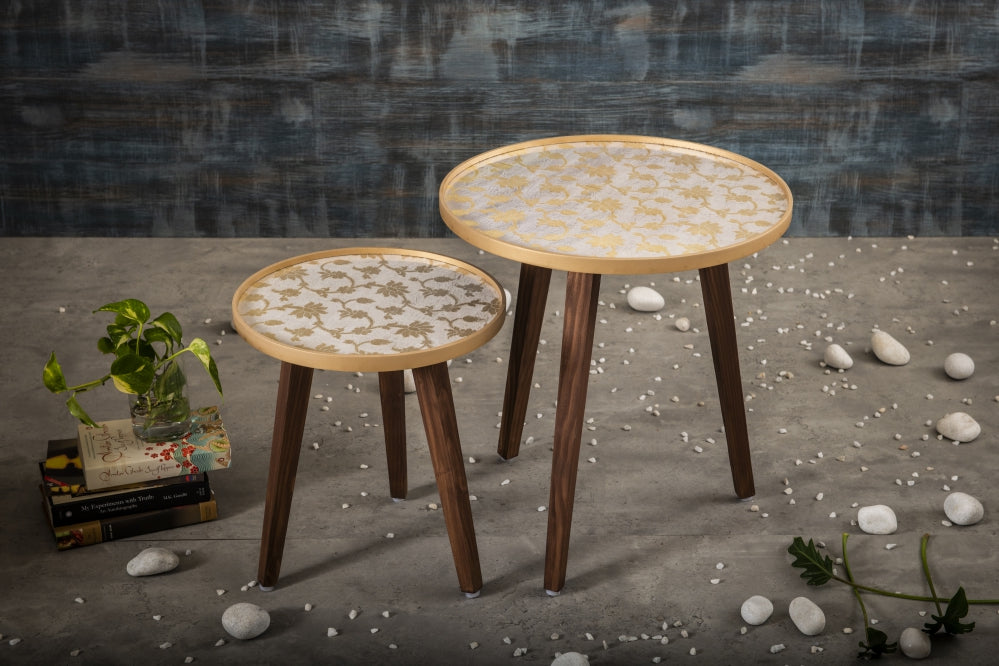 A Tiny Mistake Majestic White Brocade Wooden Nesting Tables (Set of 2), Living Room Decor